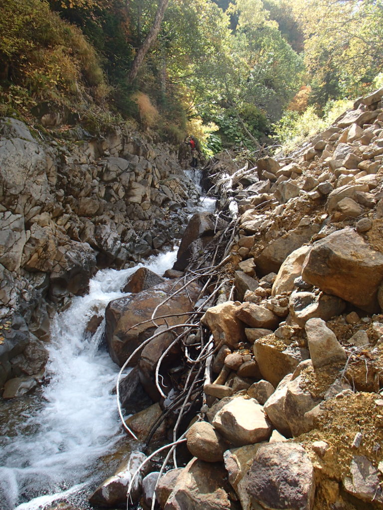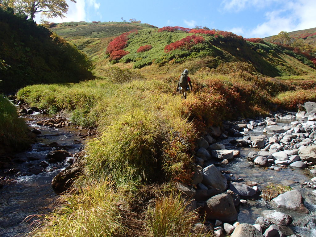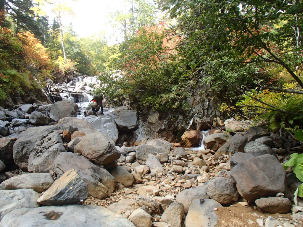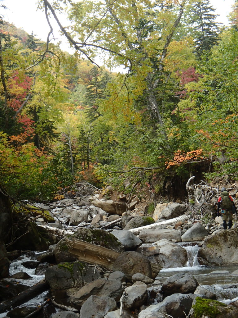 台風崩れの低気圧の影響やメンバーの欠員などで計画変更し、あまり濡れずに難しくない沢を選択、さらに紅葉狩りも盛り込みました。