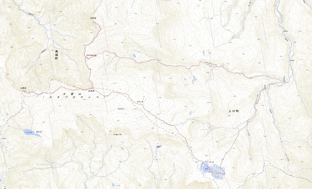 19日はクチャンベツ登山口~ヌタクヤンベ林道~ヌタプヤンベツ川~忠別岳避難小屋~忠別岳