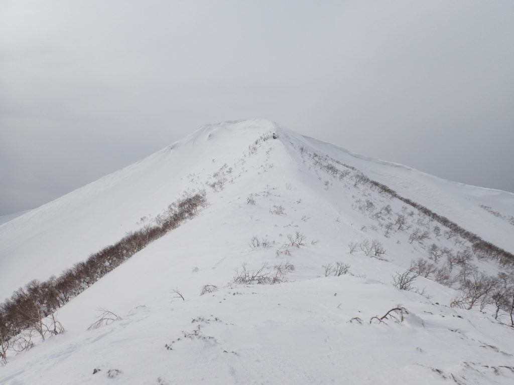 北東尾根に上がると天塩岳のピークが見えてきた。