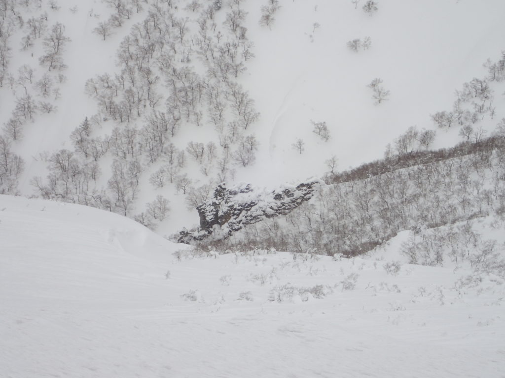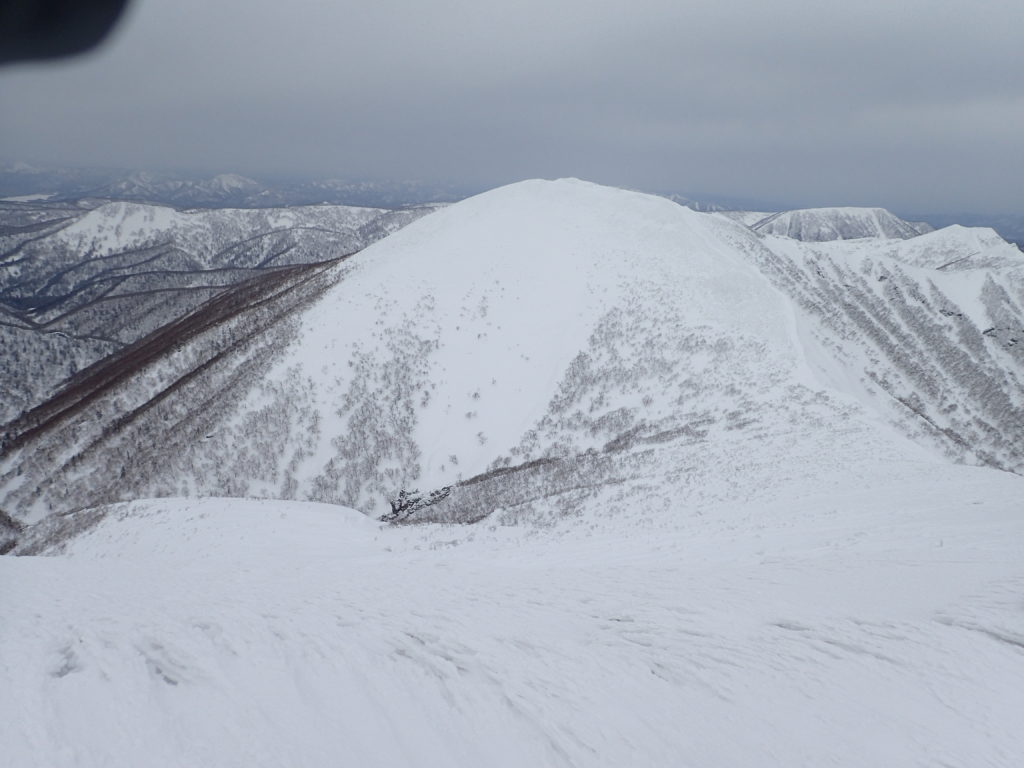 曇り空ながらピークからチトカニウシ山方面が見える。下りは一気に渚滑川に降りるが、深雪のため失速。浮島に戻ったのは17時半。疲れました。