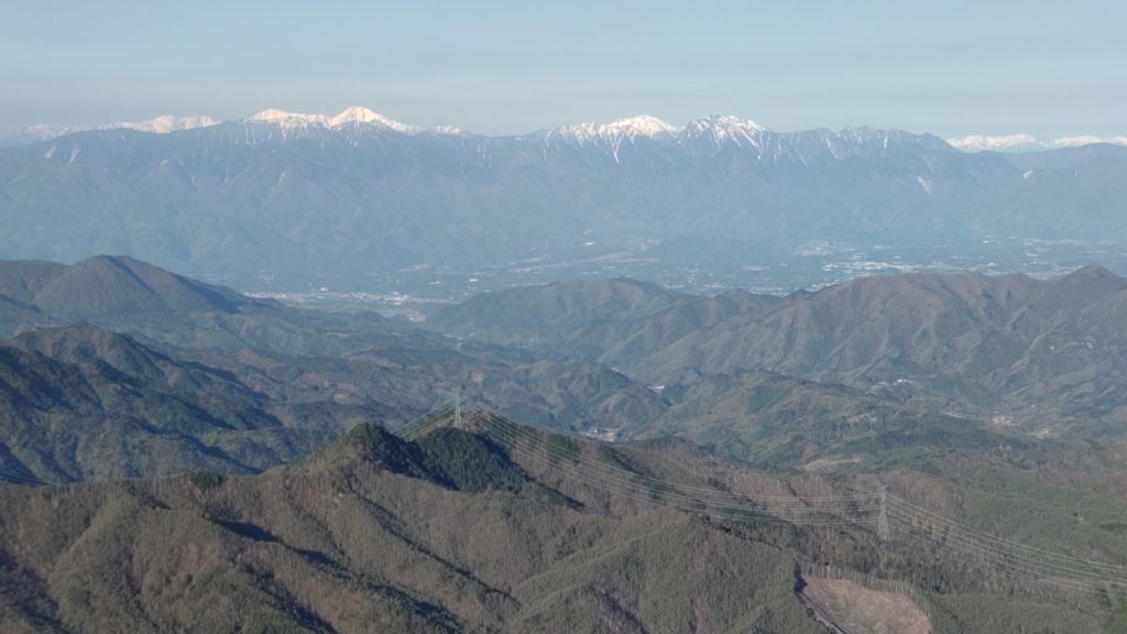 霞んでますが、中央奥の平べったい山頂はおそらく浅間山。