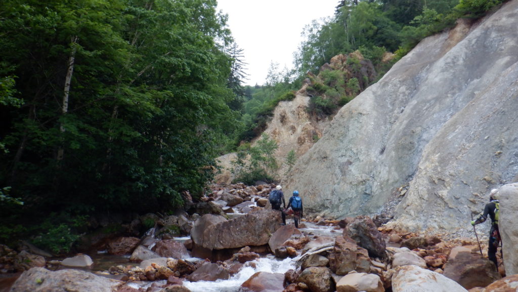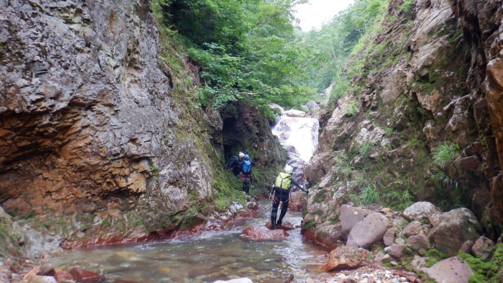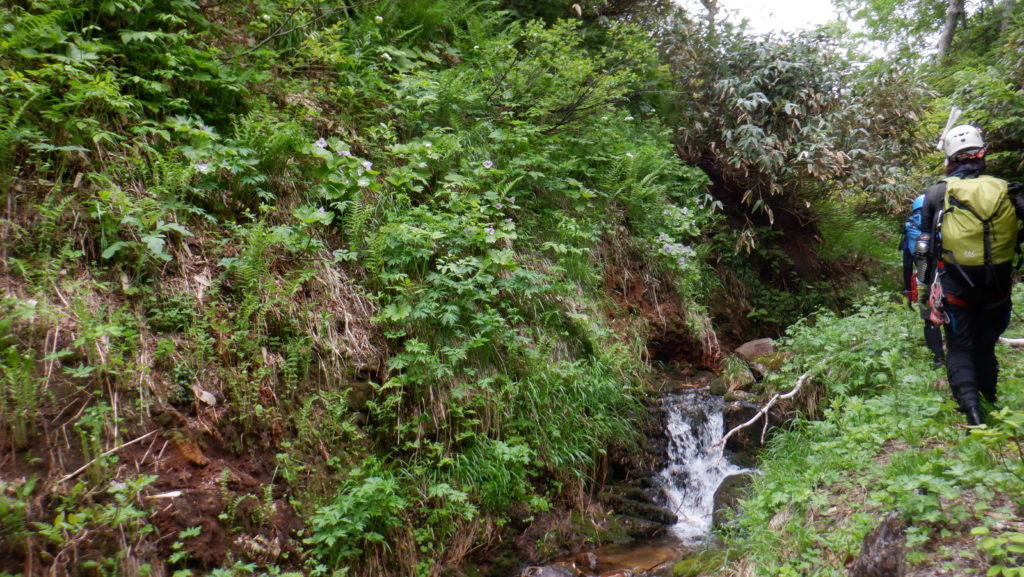 Co980付近の滝を過ぎるとやっと沢床も平坦になる。