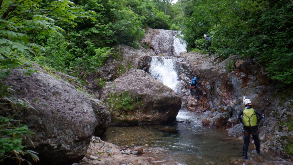 白水沢林道ゲートから荒れた林道を詰めて、40分程で白水沢に水量多めです。