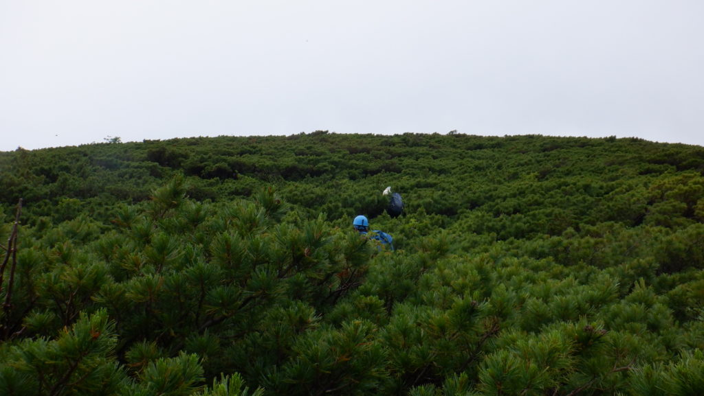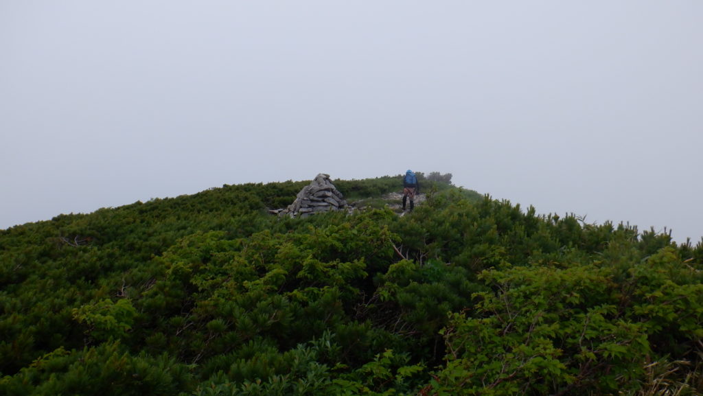 ケルンが視界に入るとピークは間近、ここでやっとヤブ漕ぎから開放される。途中ヤブのなかで、熊に出会わなくて良かった~