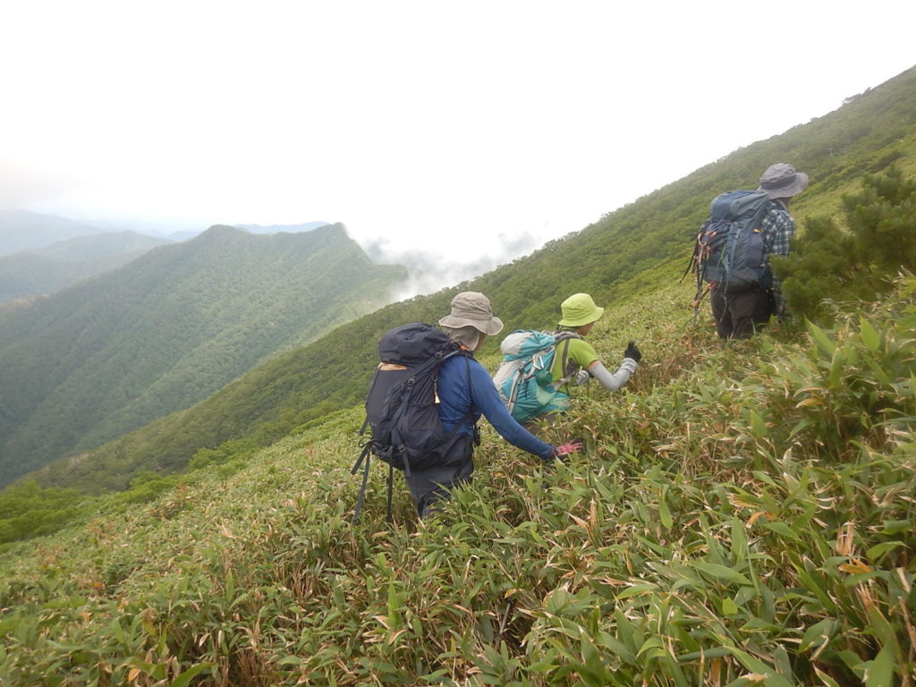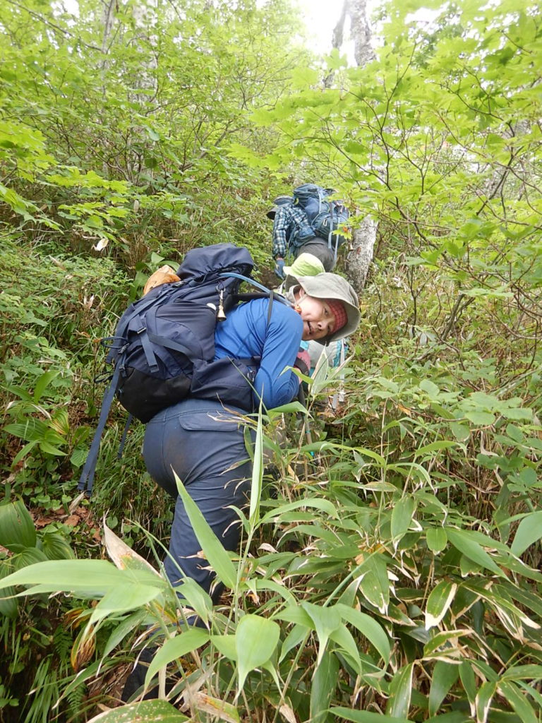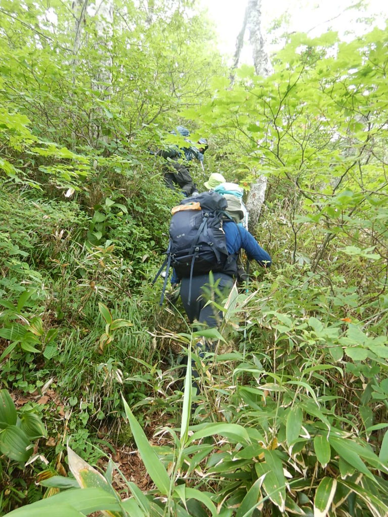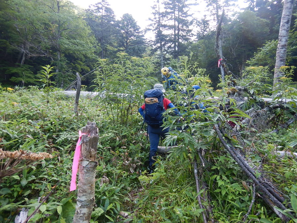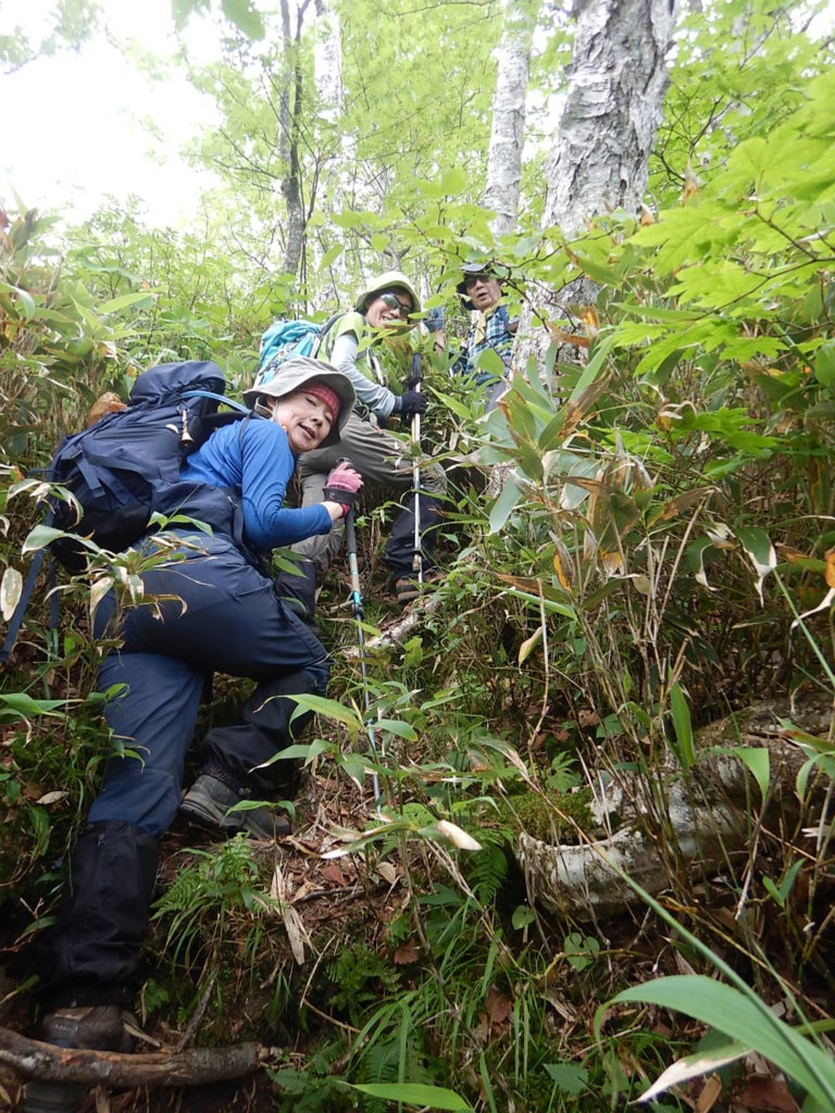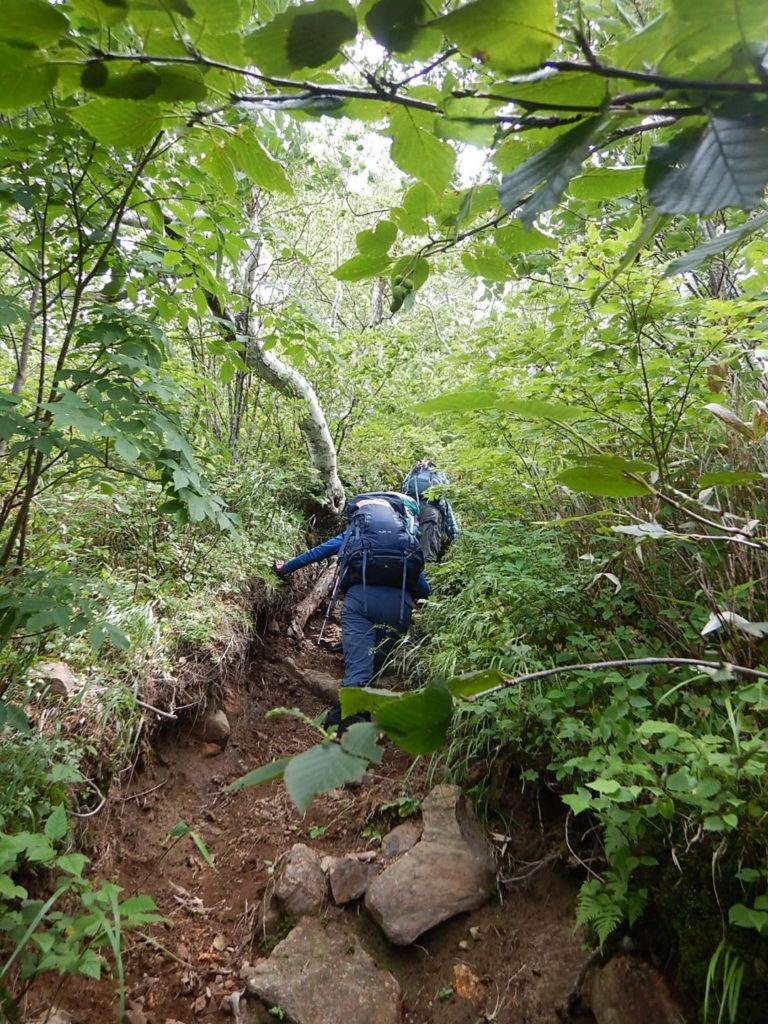 取りつきからは急登の連続だ。北海道の「三大急登」らしい!因みに三大急登はコイカクシュサツナイ岳、日高神威岳、石狩岳シュナイダーコースらしい。取りつきからの急登を酷暑のなか休むところもなくただひたすら登り山頂に立った。