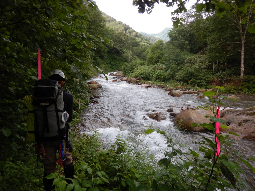 8/13 6:10びれい橋手前出発~7:30入渓~11:25山スキー沢枝沢出合~13:20co1680間違い発覚、トラバース開始~16:00北東カール、C1