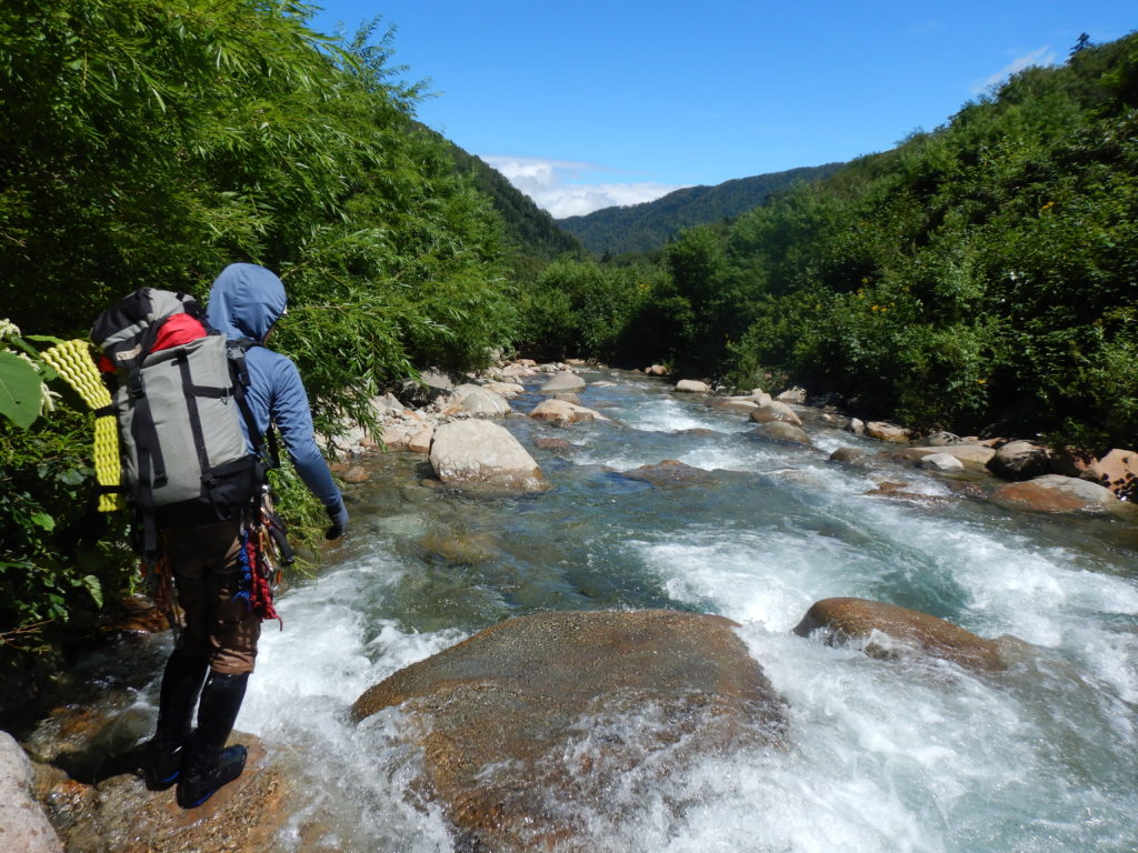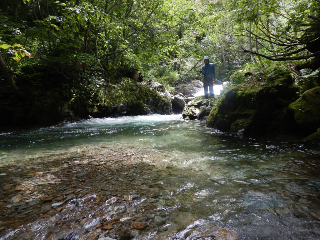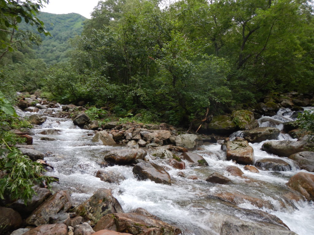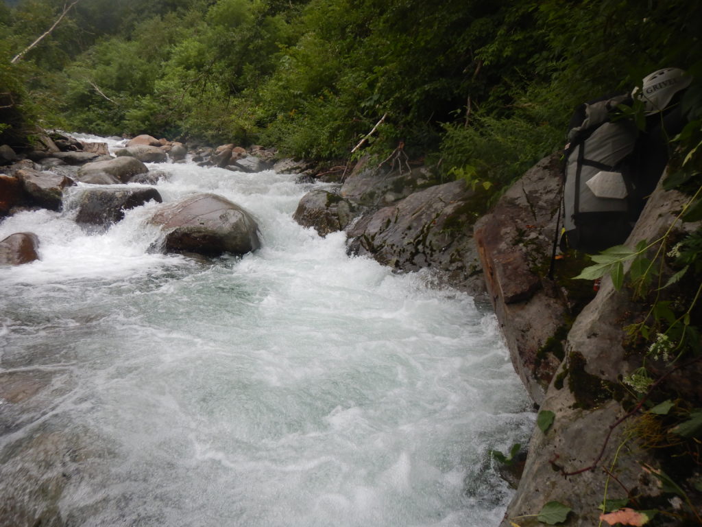 まだ多いけど前日と比べるとかなり減水して、右に左にと渡渉できるようになった
