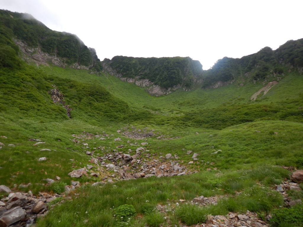 藪こいで尾根の向こうに見えたものに唖然。カールじゃんか。