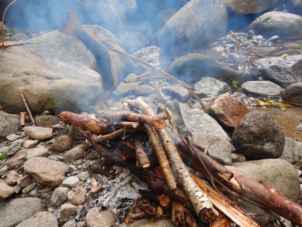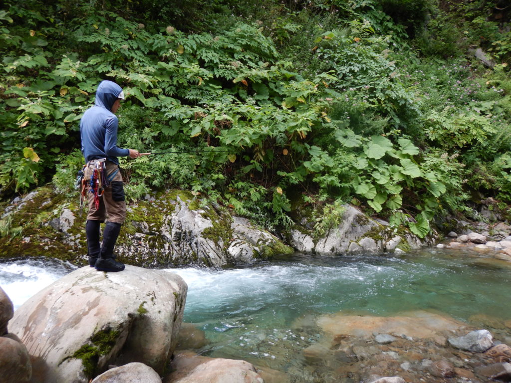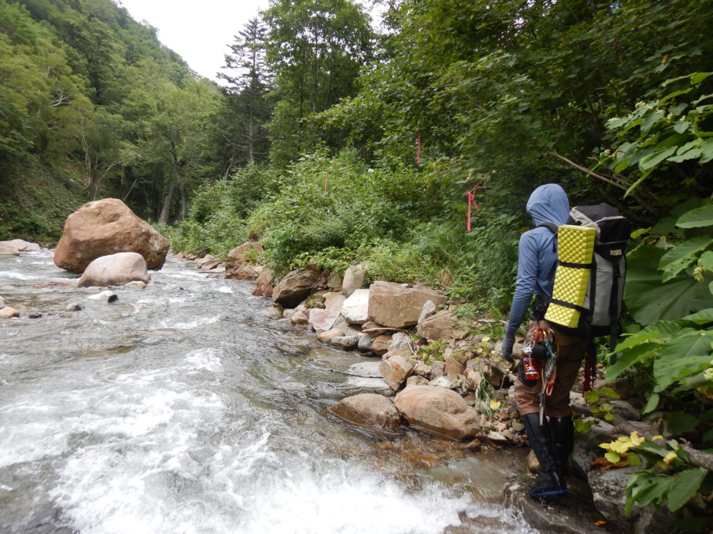 8/14 4:20 C1出発~5:30札内JP~6:20エサオマン山頂~7:30テン場~9:40山スキー沢出合~14:45林道~16:00下山 (釣り2hrs)