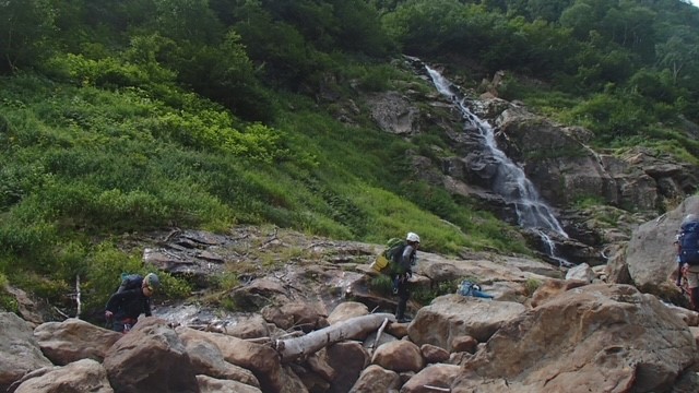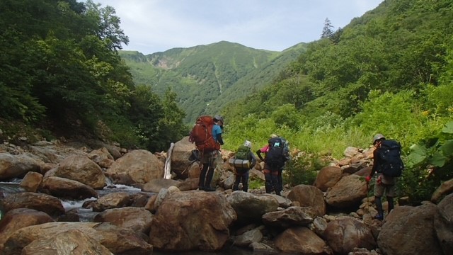 6日 5:00車止めスタート➡6:30七の沢出合➡8:00八ノ沢出合➡10:00 幕営地(999三股)➡13:00八ノ沢カール➡14:30カムエク山頂➡18:00幕営地(999三股)