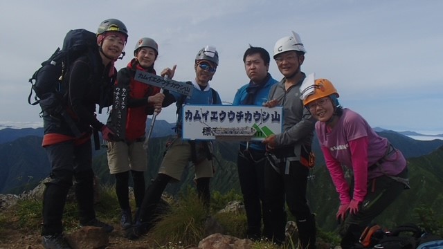 山行部の企画で6名でカムエクに行ってきました。リーダー私、サブリーダーM氏は何れも初、その他(H内さん、K恵さん、M崎さん)3名も初で、唯一M子さんが経験ありで企画の段階から支えになってくれた。2日目の天気が不安定で増水なども心配されたため、999三股に幕営し、荷物を軽くし初日にピークを踏むという強行なスケジュールにしたが、みんなよく頑張って登ってくれました。沢になれていないメンバーもいたのでどうかと思ったが、ピークを全員で踏む、しかも良い天気で眺望の良い中を踏むというのを考えたスケジュールであったが、本当にみんなよく頑張って歩いてくれました。お陰で全員で予定通りの時間にピークを踏んでめちゃくちゃ良い景色を堪能できました♪