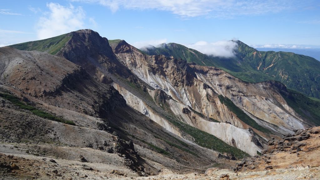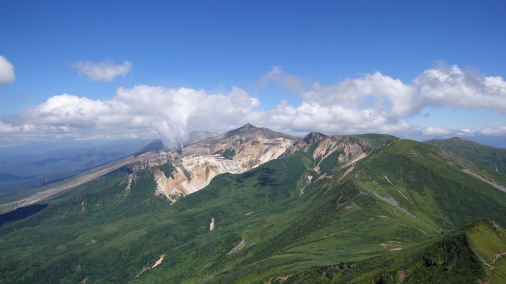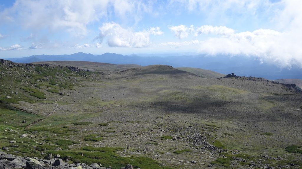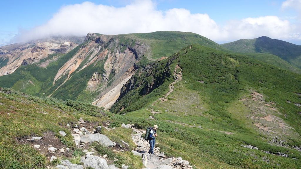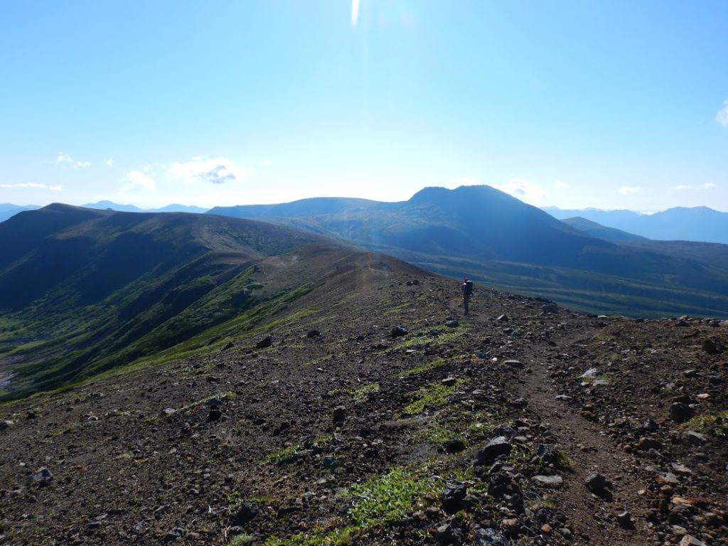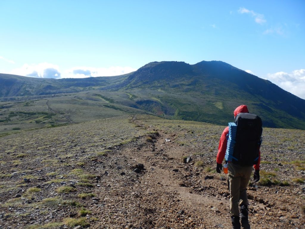 旭岳と忠別岳。ルートが湾曲しているためなかなか遠くならず