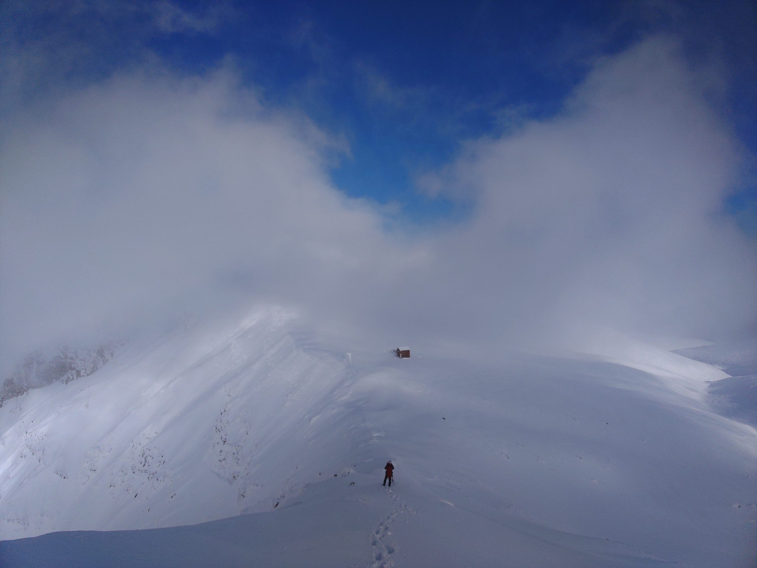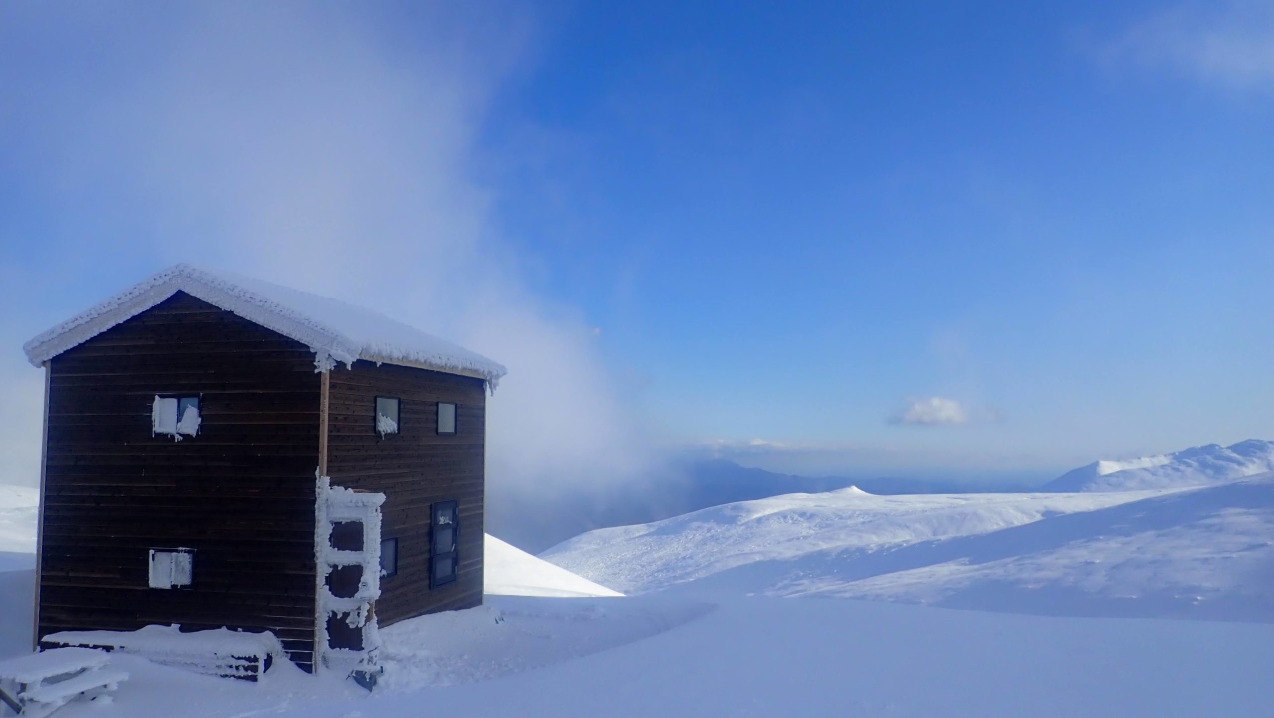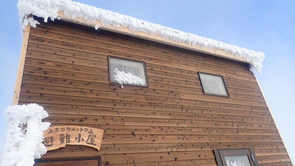 下山開始。実は個人的にカミホロ避難小屋を見るのは初めて。(今まで視界不良で見た事なし)