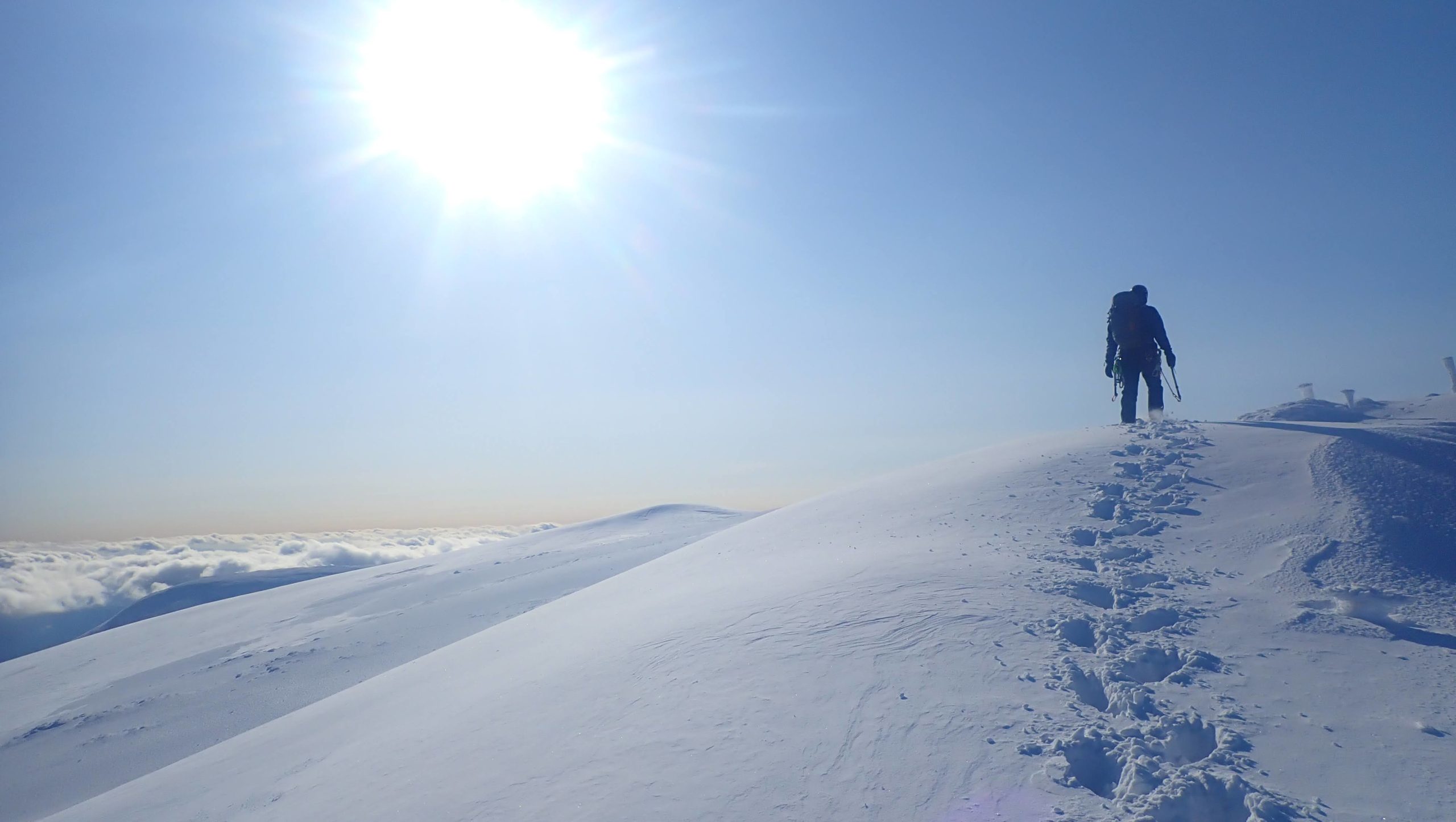 こんな快晴で景色に酔っているかと思いきや、デポしたスノーシューのことを考えている最中