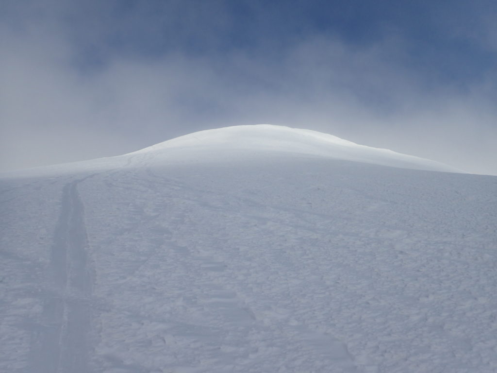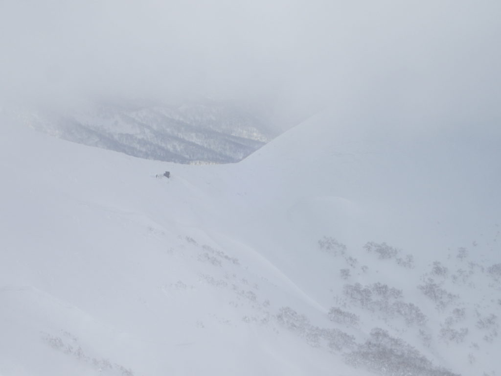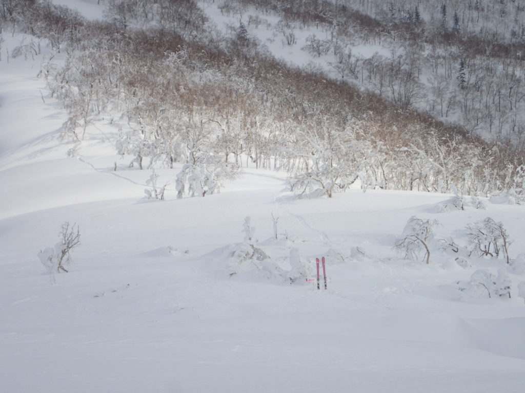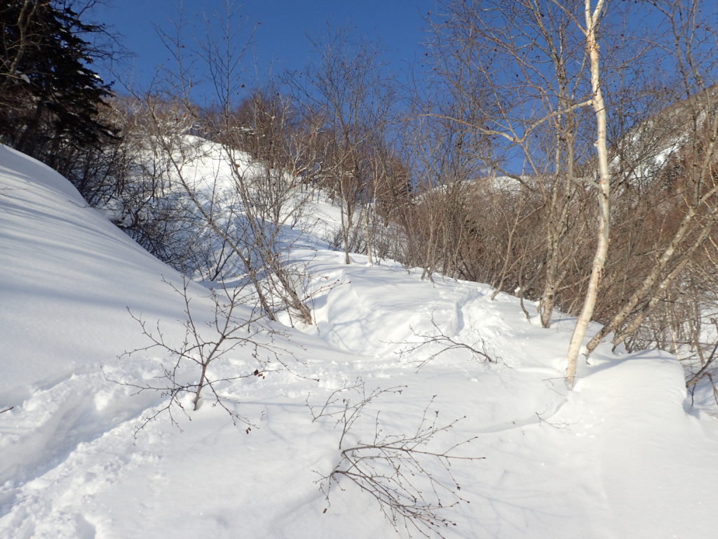 1月末に中央労山のパーティーで行った天塩岳に再訪しました。前回は、視界が悪く頂上直下で時間ぎれ。今回も天気を見ながら行けるところまでと思い登山口へ。幸い札幌のスキーヤーが先行していたためトレースを利用。楽チン山行となり、ラッキーでした。天気が良かったのですが、さすがに1200mを越えると視界が悪くなりました。1470標高点手前の緩斜面でアイゼンをつけ、ゆっくりとピークへ。11時38分着。やっぱり風が強い。スキーヤー達は、ピークから南斜面を滑降。私はのんびりと14時20分に下山。朝-15℃が帰りは-5℃暖かい日でした。
