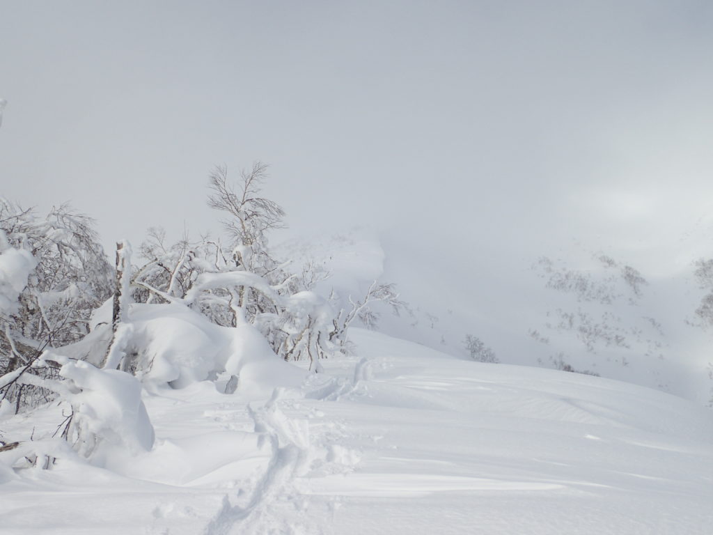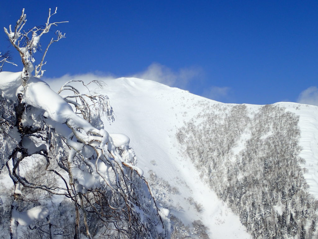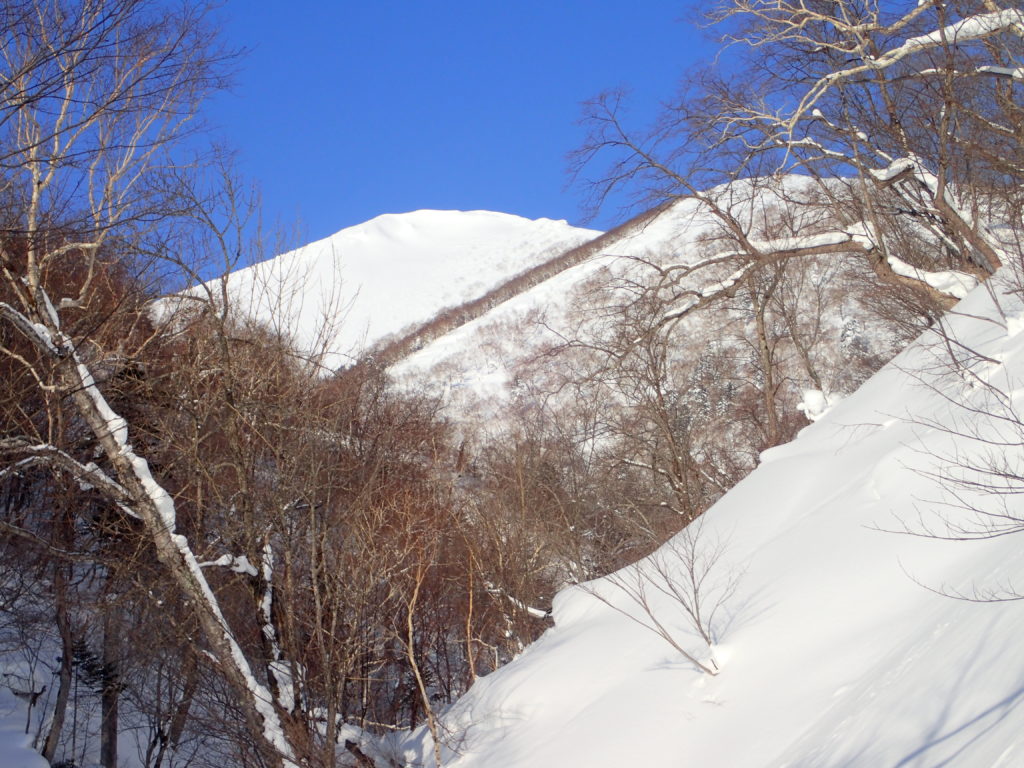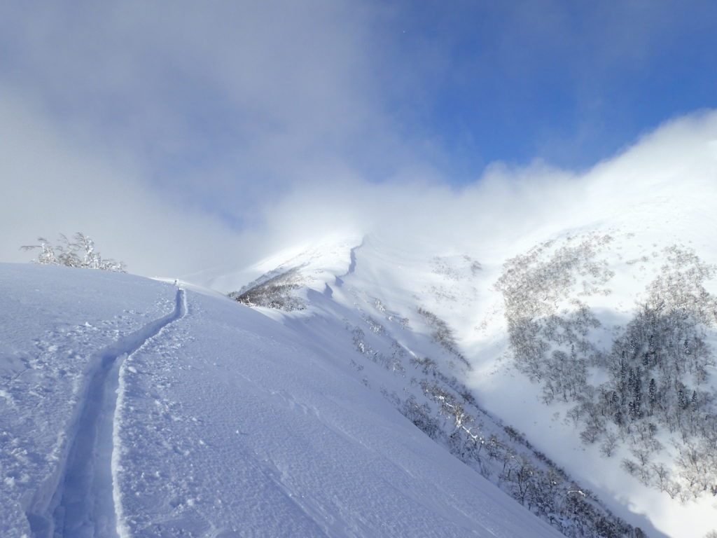 1月末に中央労山のパーティーで行った天塩岳に再訪しました。前回は、視界が悪く頂上直下で時間ぎれ。今回も天気を見ながら行けるところまでと思い登山口へ。幸い札幌のスキーヤーが先行していたためトレースを利用。楽チン山行となり、ラッキーでした。天気が良かったのですが、さすがに1200mを越えると視界が悪くなりました。1470標高点手前の緩斜面でアイゼンをつけ、ゆっくりとピークへ。11時38分着。やっぱり風が強い。スキーヤー達は、ピークから南斜面を滑降。私はのんびりと14時20分に下山。朝-15℃が帰りは-5℃暖かい日でした。
