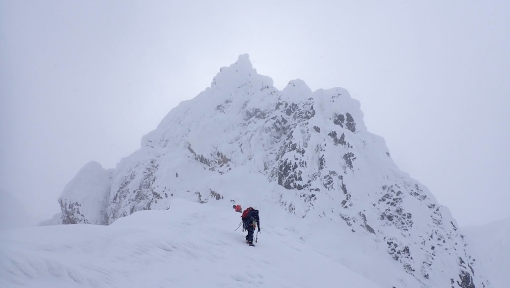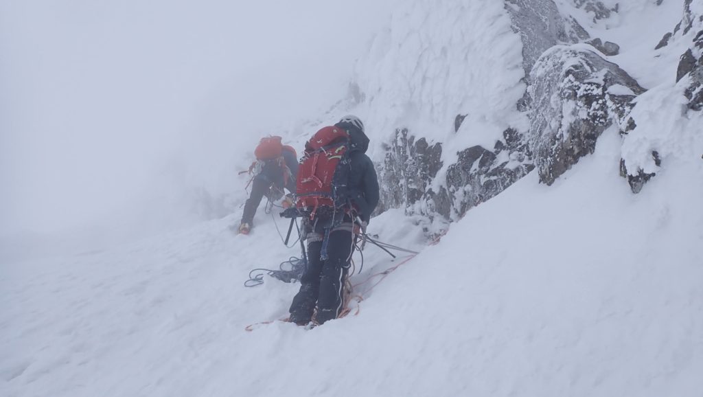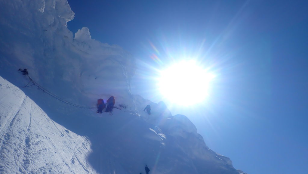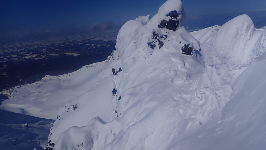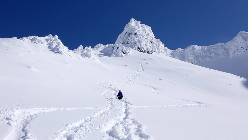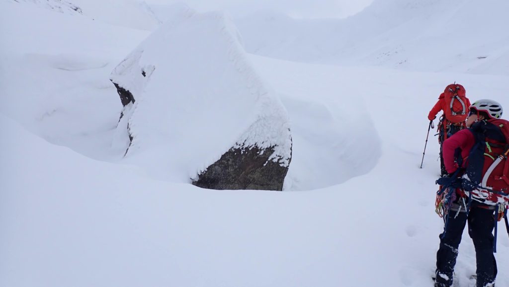 前日と同じくトラバース。トレースは少しだけ残っていた