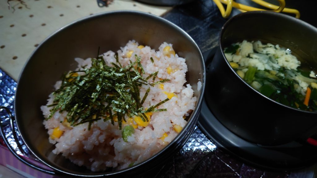 野営場でC2のディナー。リーダーが作る棒ラーメンが疲労困憊の体に沁みた。