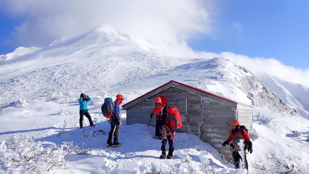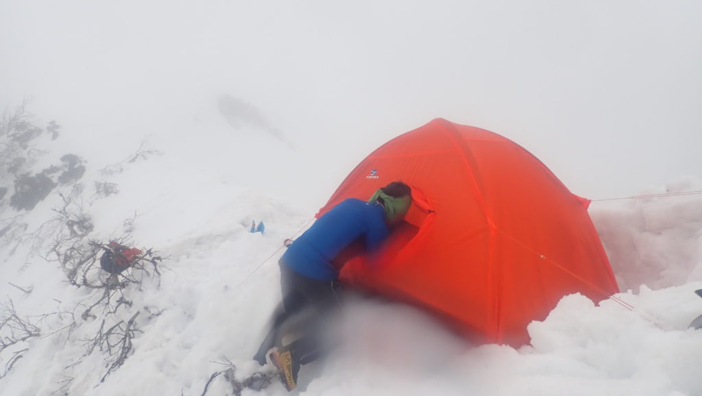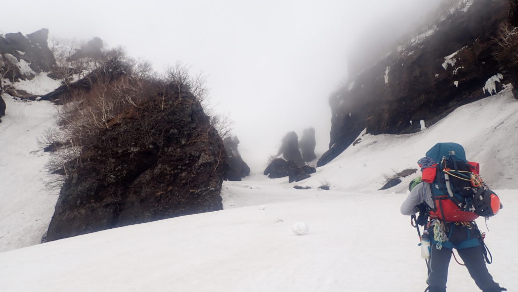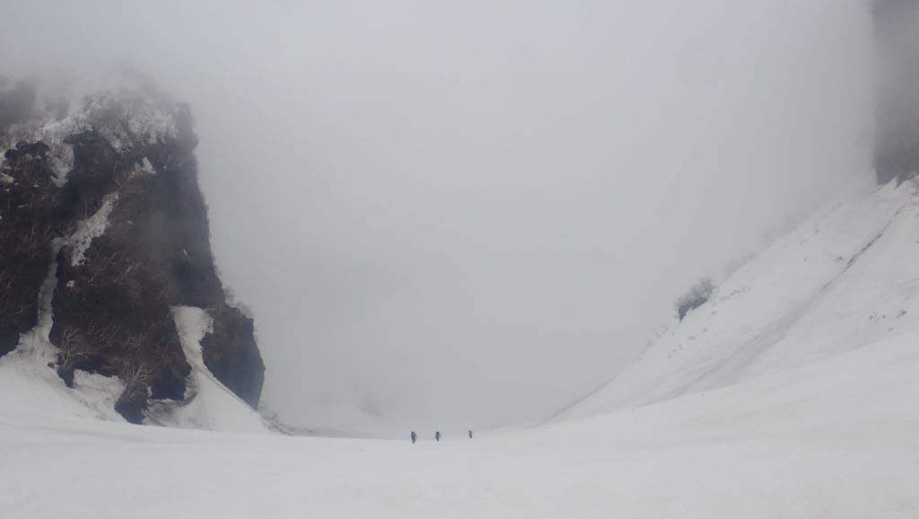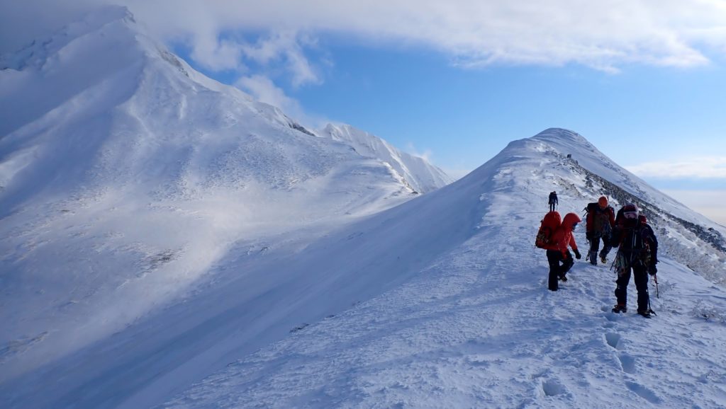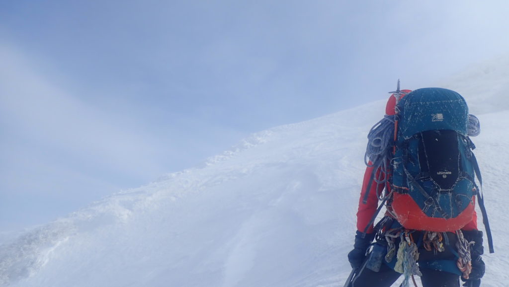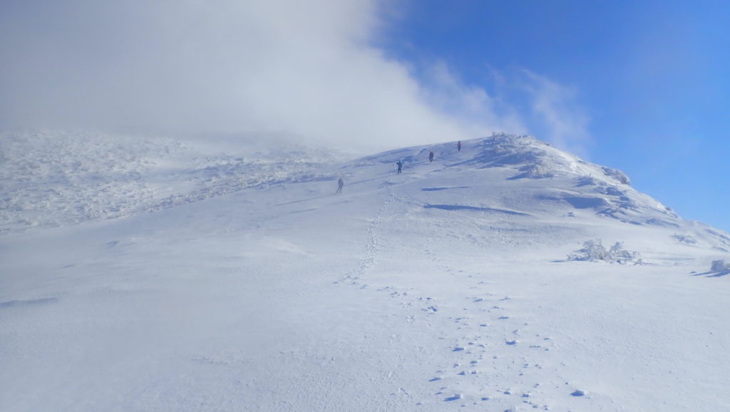 しばらくは雪稜歩き。強風・視界不良・雪の踏み抜き…と悪条件。