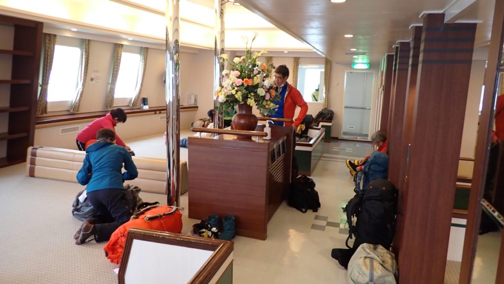 乗船してから1時間ちょっとで鴛泊へ。船内では大阪から遠征のお二人が。
