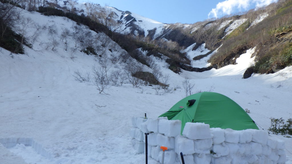 そのまま今日は終了し、沢の中にテント張る。朝方まで断続的に強風が吹く。