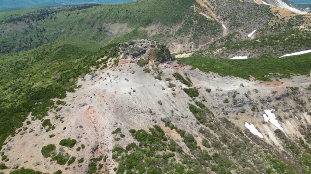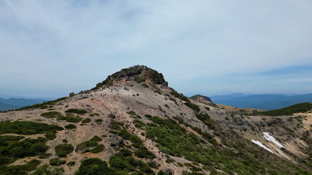 安達太良山、薬師岳の他、鉄山、舟明神山も周回予定でしたが時間の都合で安達太良山、薬師岳のみの周回になりました。沼の平の火口は迫力満点でした。花の百名山にふさわしく多くの植物が見受けられました。特に登山道沿いには多くのシャクナゲがあり開花シーズンにはもう一度来てみたいと思いました。