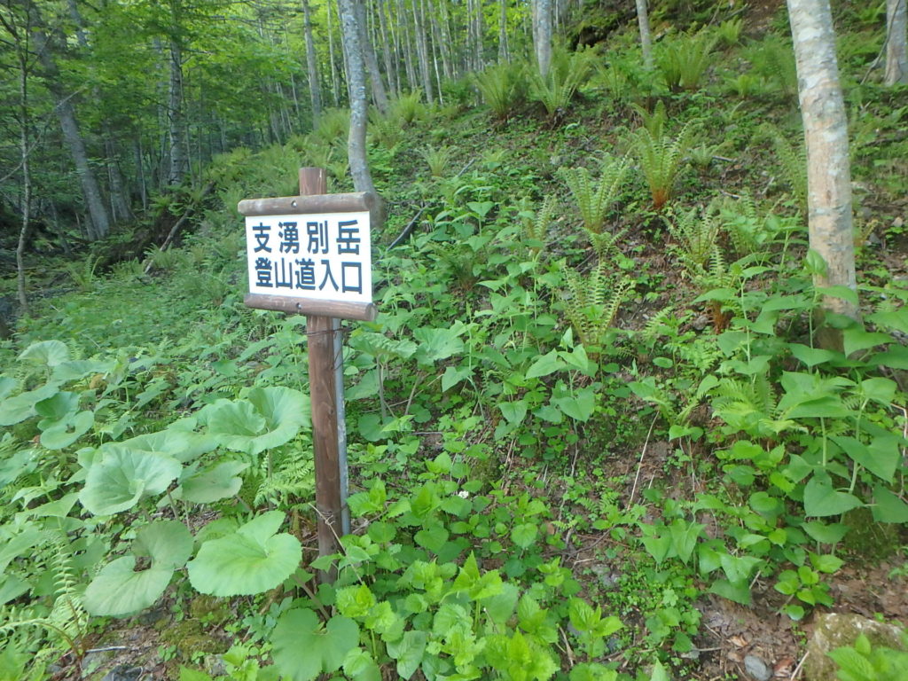 登山口へは白滝から支湧別川沿いの道を行き上白滝よりパンケシュウベツ川沿いの道へと進む。(看板あり)車で行けるのはチェーンゲートのある538辺りまで。(4台ほど駐車可)パンケ支湧別林道を真っ直ぐ進み、歩いて間もなく最初の林道崩壊地点(1つ目と2つ目は右岸に鹿道)。出発して20分ほどで左手に帽子岩。更に10分歩いて610二股。右のパンケ支湧別白雲線へ。610二股より約40分ほど歩いて林道崩壊前のかっての登山口。(登山口看板現存)
