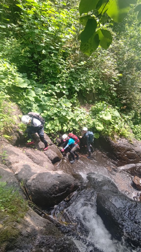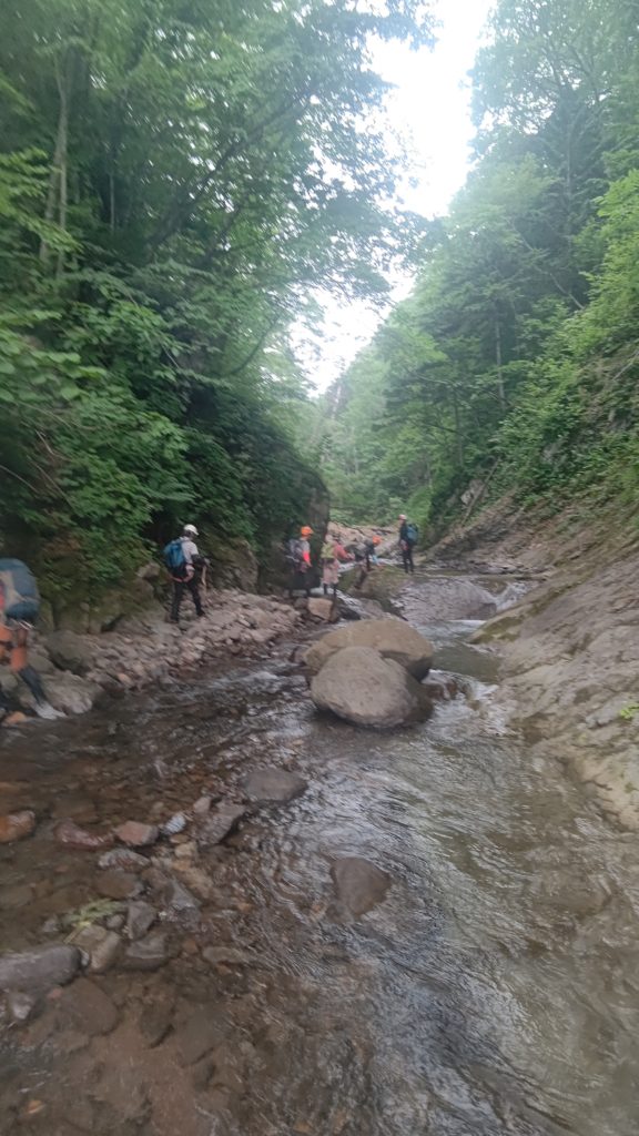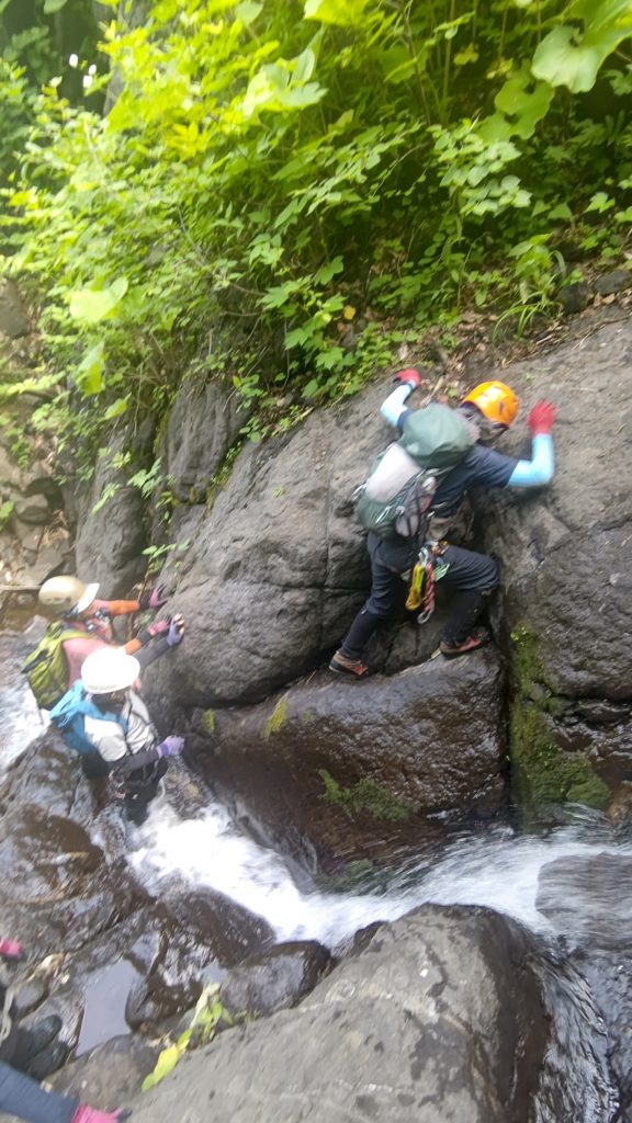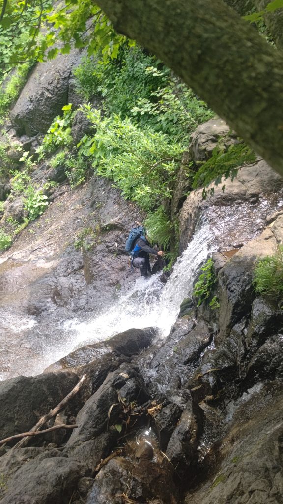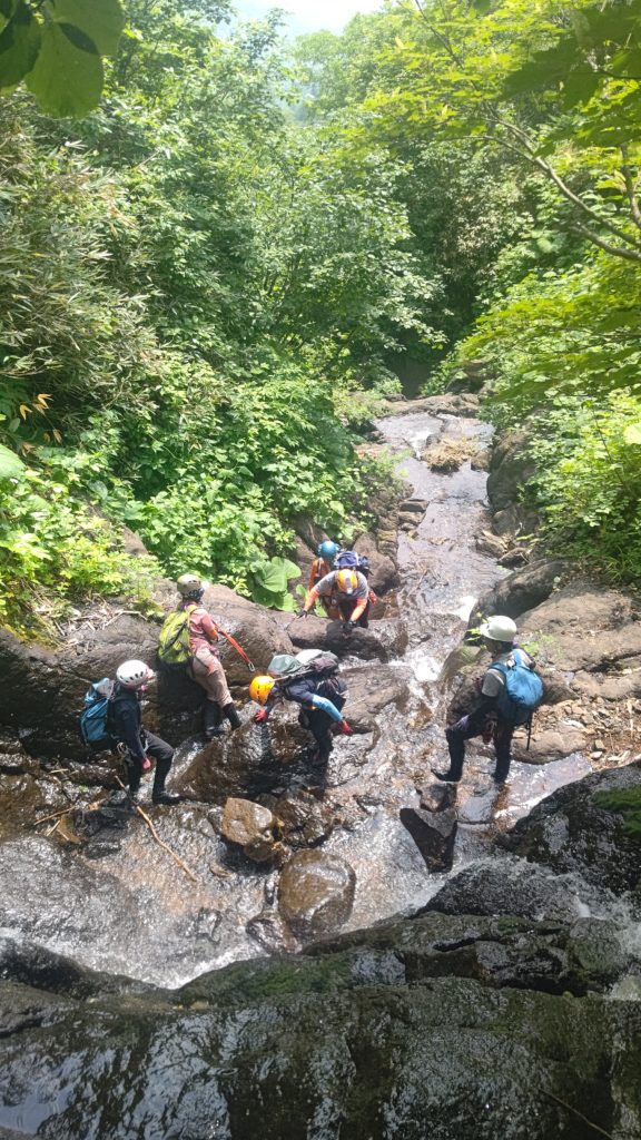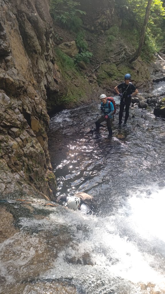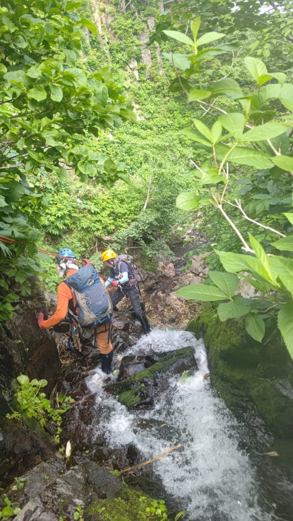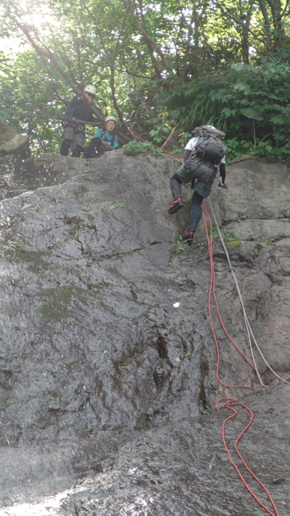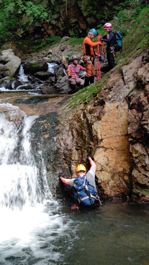 1年前に入門を受けた漁にスタッフとして帰って来ました。前日から体調が悪いし(ワイン1本でこの俺様が二日酔いだと…!?と思ってたら風邪だった)天気もガッスガスだしで心配でしたが…地図読みや懸垂下降、支点の作り方等実施、山頂も踏めて無事終了。F1でのドボンもあり、楽しい沢入門でした。