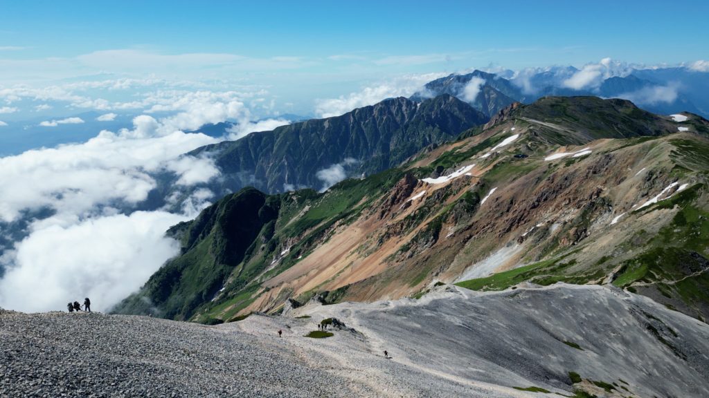 白馬大雪渓を登るルートは多数のクレパスが発生しており、崩落の危険性があり、ルートが確保されるまでの間、通行止めとなっていたため、今回は、栂池から登り、白馬三山(白馬岳、杓子岳、白馬鑓ヶ岳)、白馬鑓ヶ岳温泉を周り、猿倉に下山するルートとしました。台風の影響も心配していましたが、幸い影響なく山行を終えました。登山道付近には花の百名山にふさわしく、多くの花が咲きみだれていました。