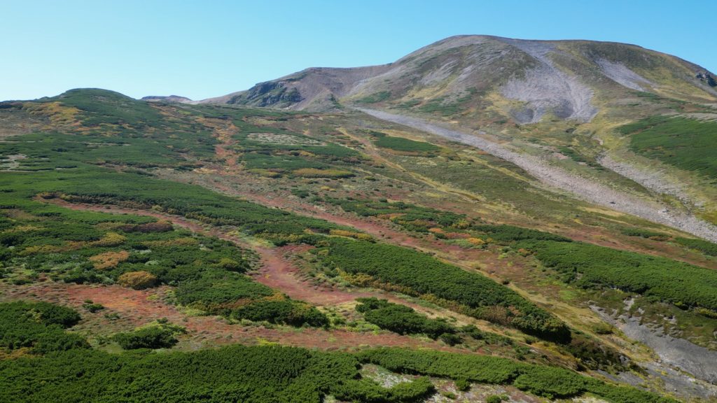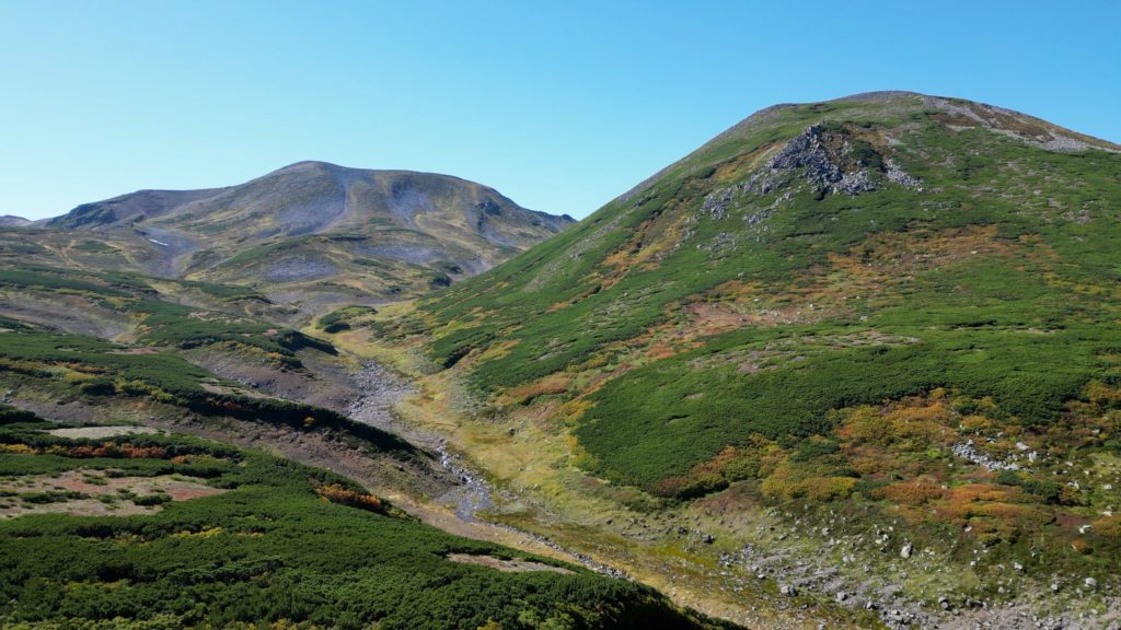 黒岳経由でお鉢まわりをしてきました。天気は良かったものの、風が強く、足早に回ってきました。黒岳の山肌の紅葉はこれからですが、山頂からお鉢にかけては紅葉が始まっていました。旭岳方面も少し紅葉が始まった感じでした。