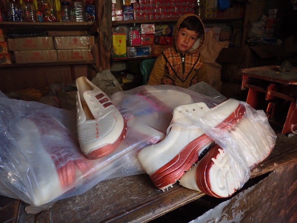 サンダルやこのような簡単な作りの靴で、石がごろごろの悪い道や氷河などを