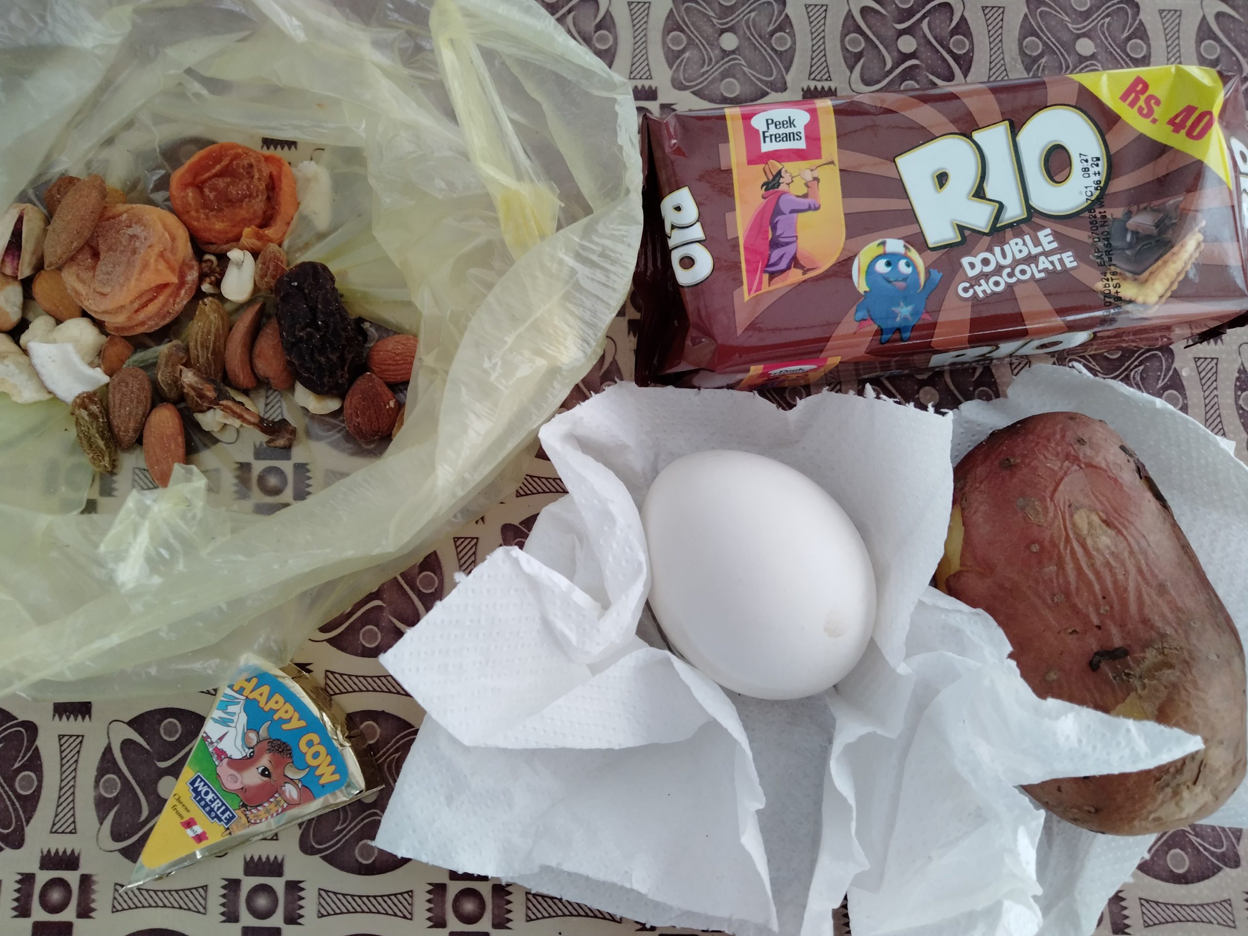 ATPが用意してくれたこの日の行動食 右端はジャガイモです ジャガイモは普段のご飯にも高頻度で登場していました