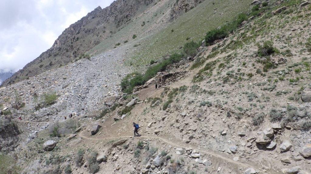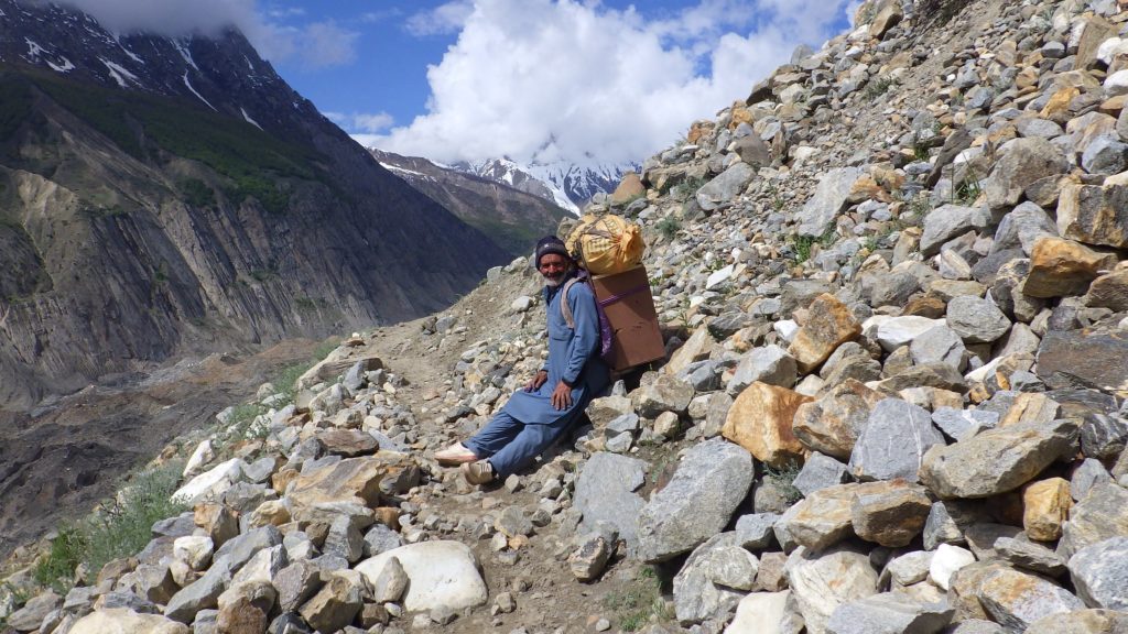 Arandu村の村長さんがベースキャンプまで同行してくれます 御年57歳 平均寿命が65歳のパキ人にしては高齢の部類と思われますが、身のこなしが軽やかでたたずまいが凛として年齢を感じさせないカッコイイ村長さんです
