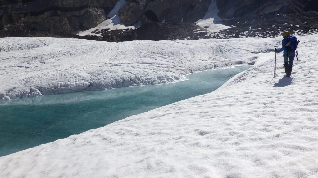 複雑な氷河の中を登ったり降りたりして進んでいきます
