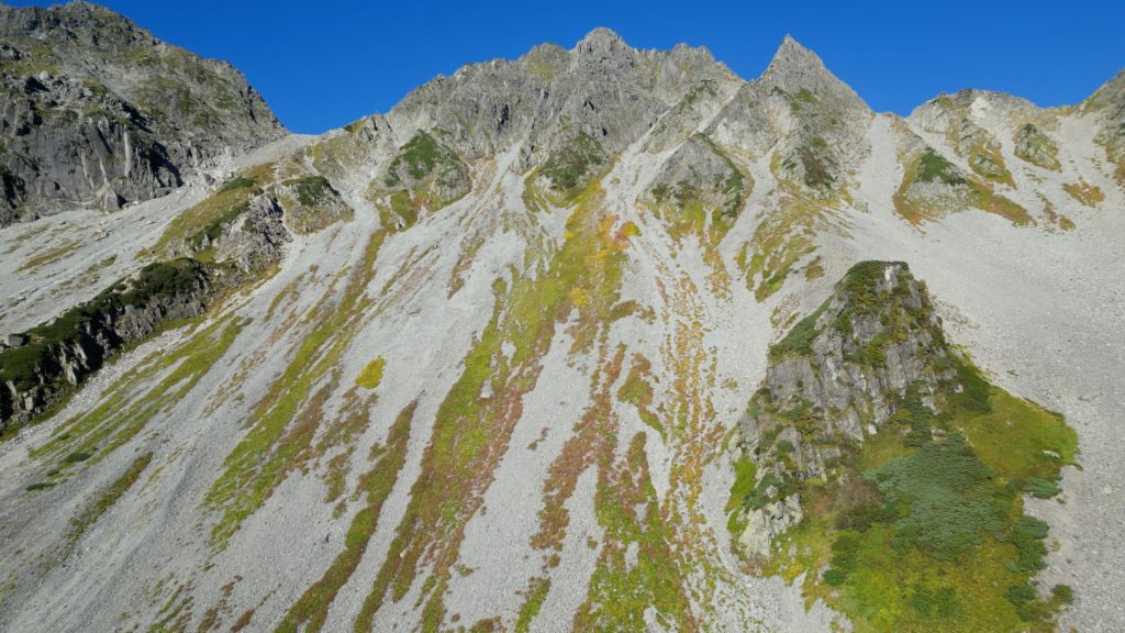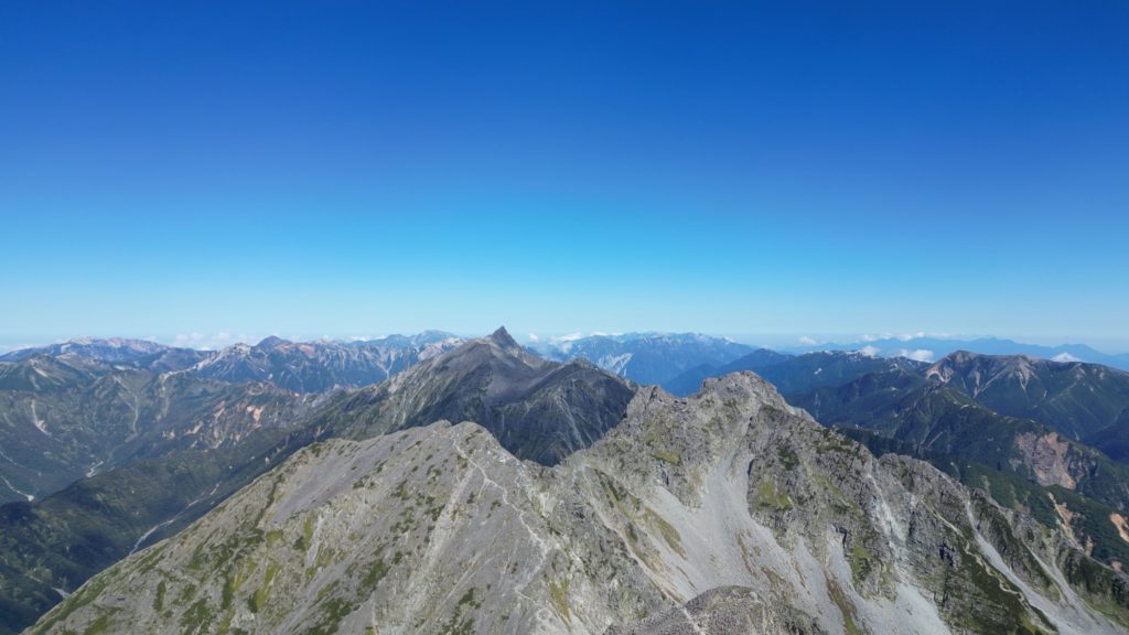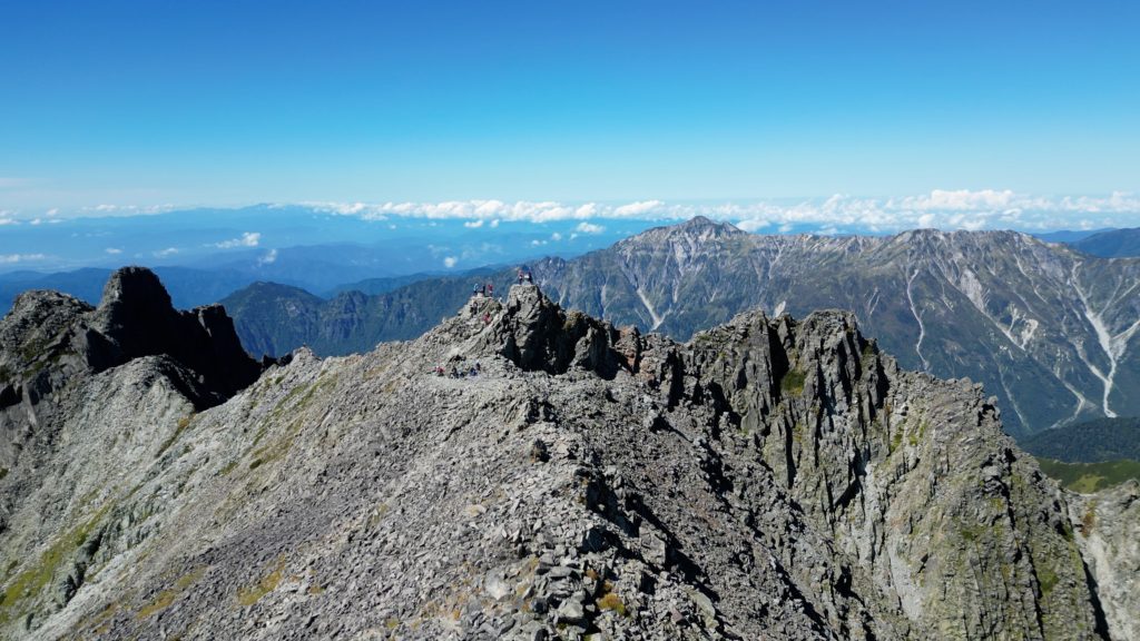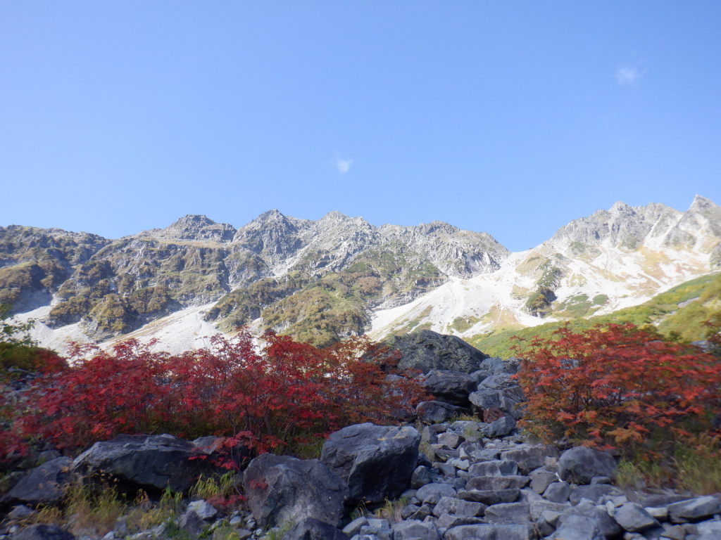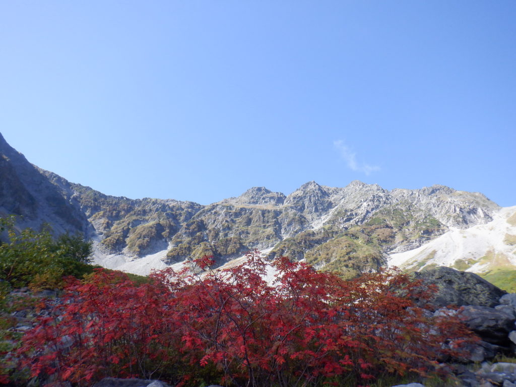 天気に恵まれ、山頂から北アルプスのパノラマを楽しむことができました。涸沢カールの紅葉も始まっており、これから本番といったところでした。