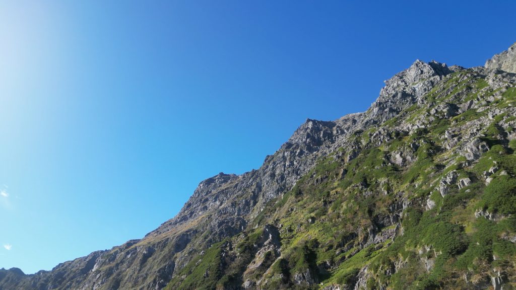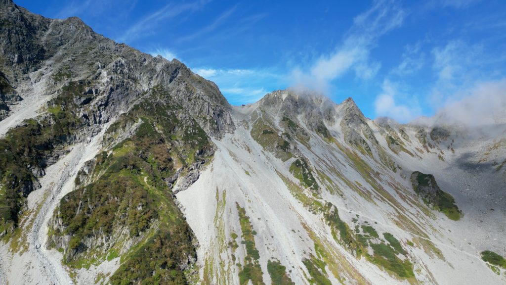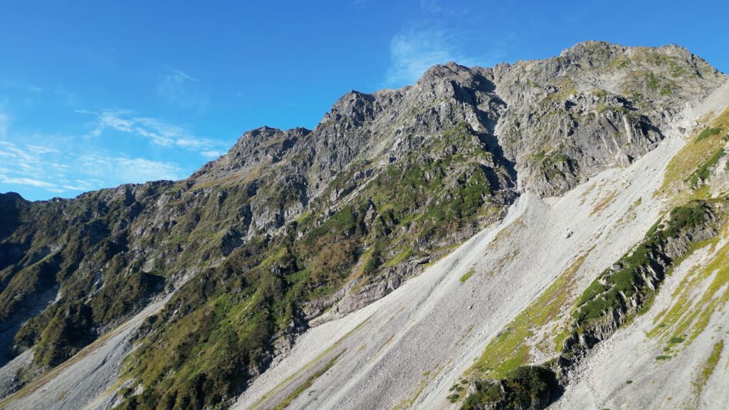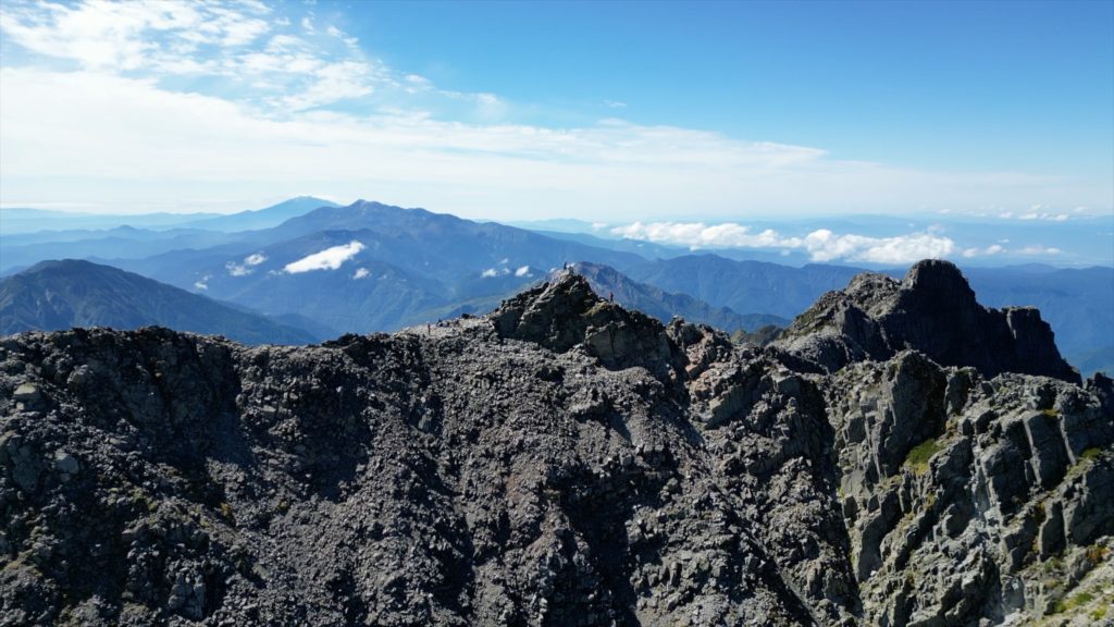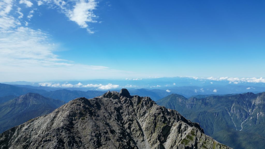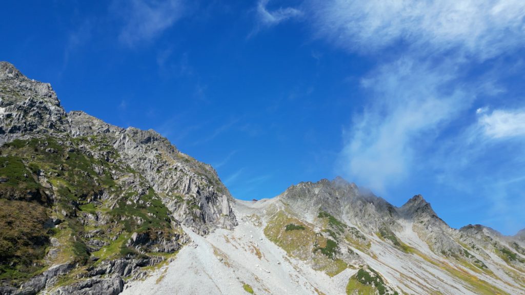天気に恵まれ、山頂から北アルプスのパノラマを楽しむことができました。涸沢カールの紅葉も始まっており、これから本番といったところでした。