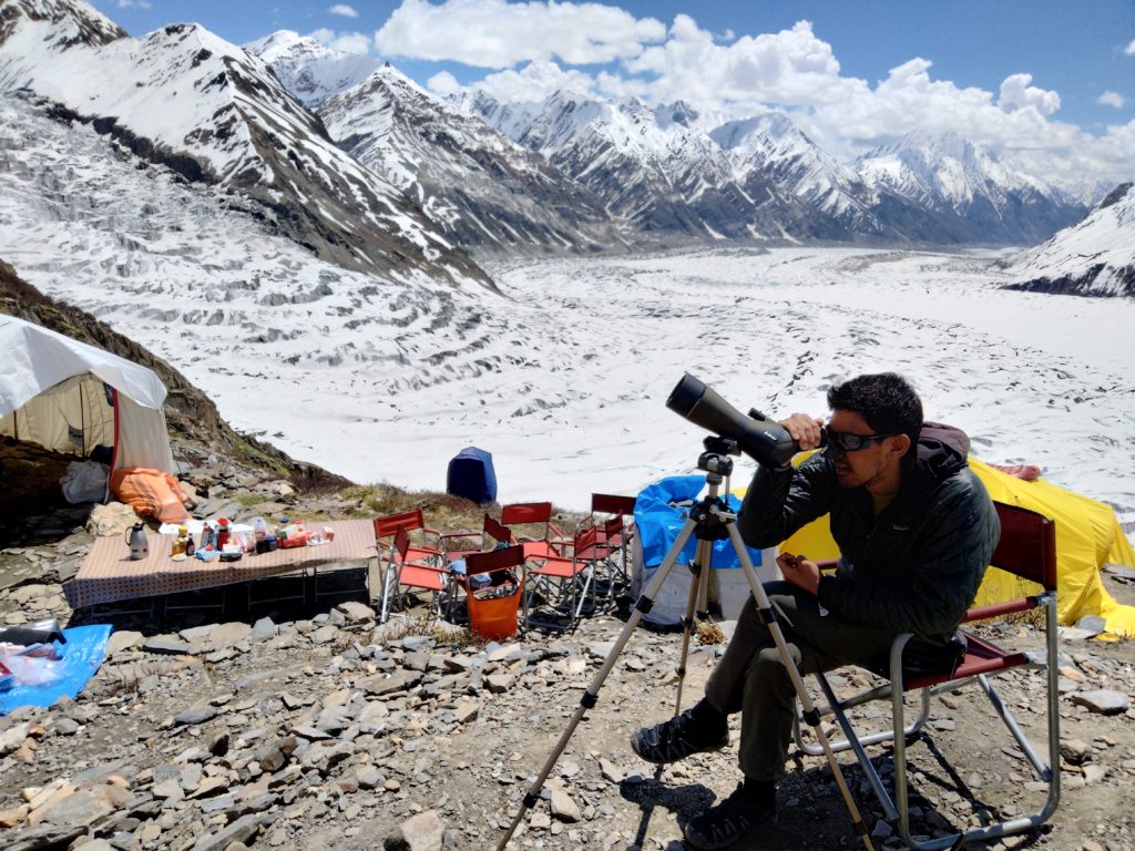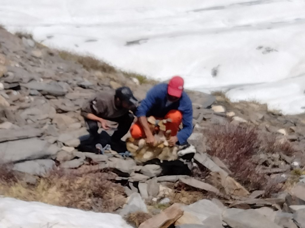そんな中、TAKAがポーターに連れられて氷河上を歩いて来る「黒い顔の犬みたいなやつ」をフィールドスコープで発見!
