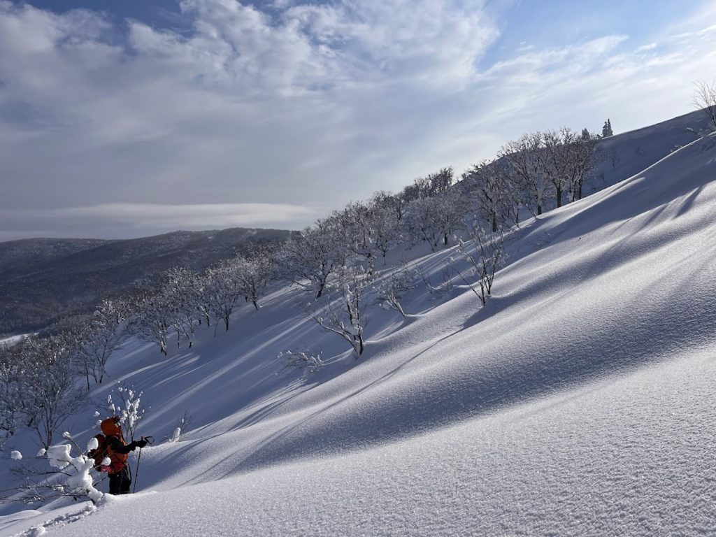 数日間、積雪はなかったようだが、極寒のためパウダー状態。特に、北斜面の鷹泊は最高!