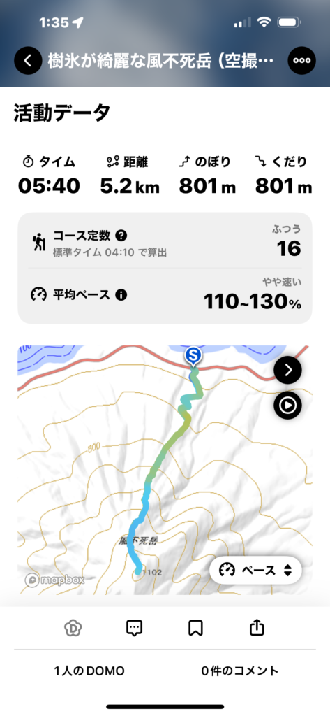 冬山始めで、樹氷と綺麗な景色が見れそうなこの山を選び、朝一番でのスタート、山頂付近では期待通りの風景が見れました。足元が悪く、予想以上に時間がかかりましたが、山頂はピーカンで、気持ちの良い時間を過ごすことができました。
