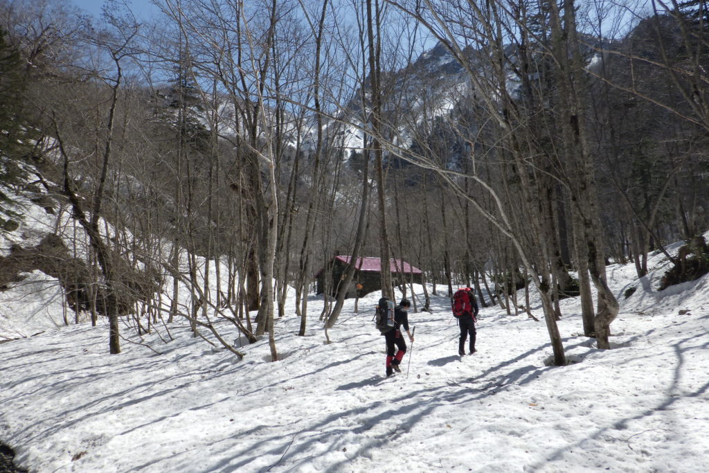 本谷を登る登山者