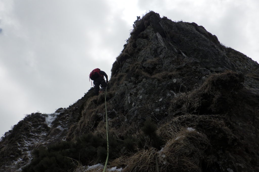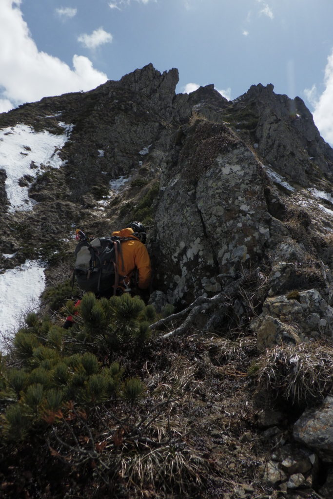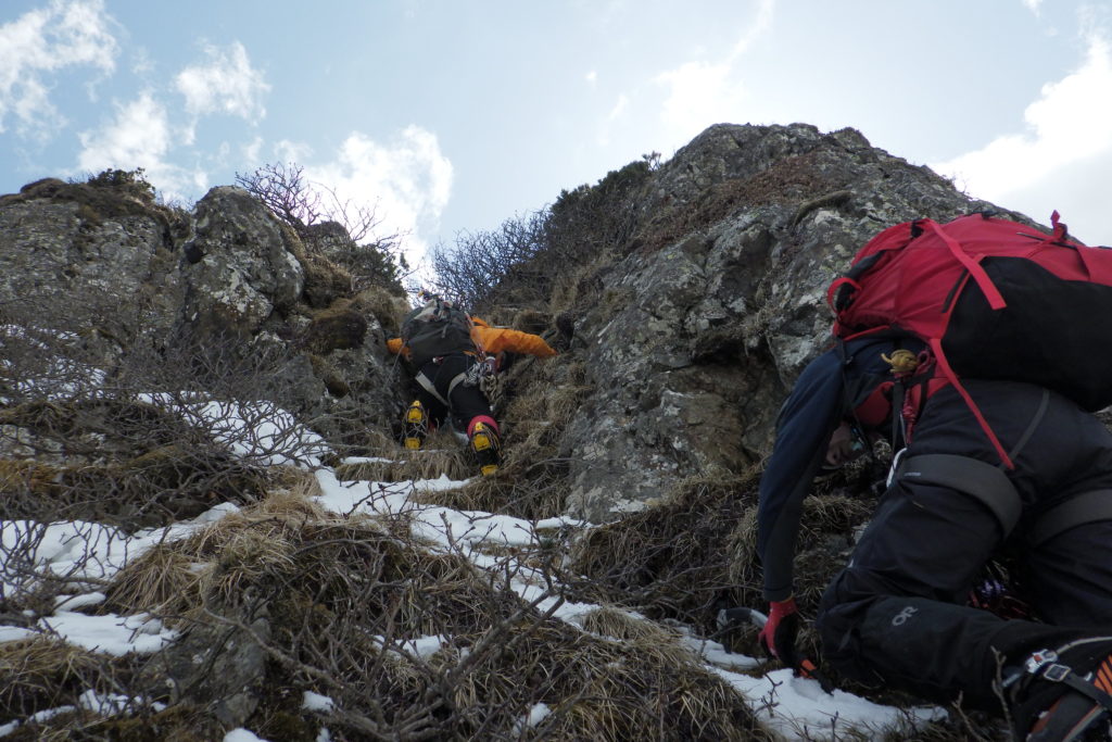 一稜取り付きにて