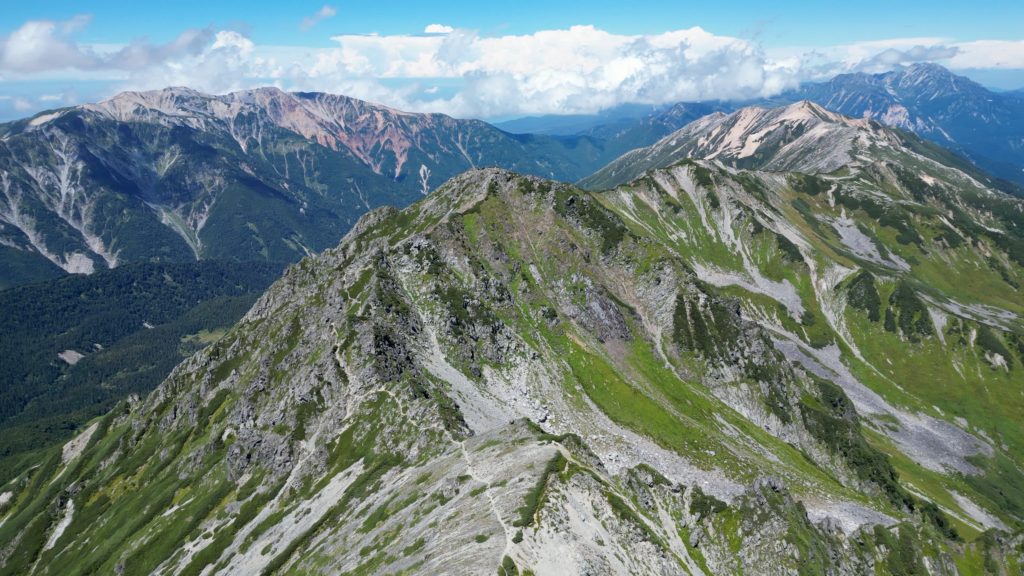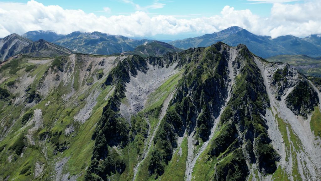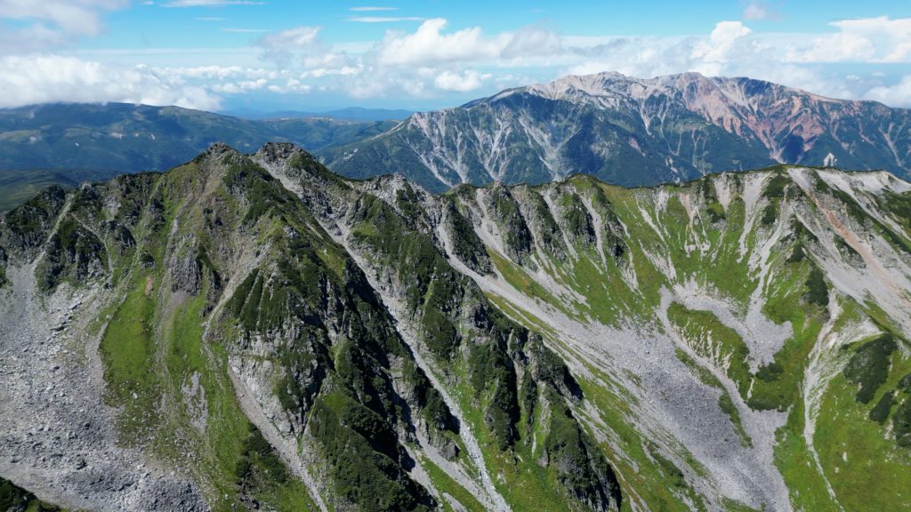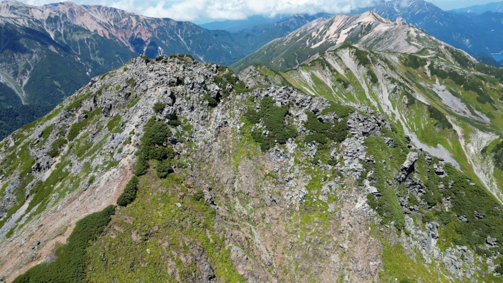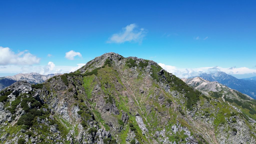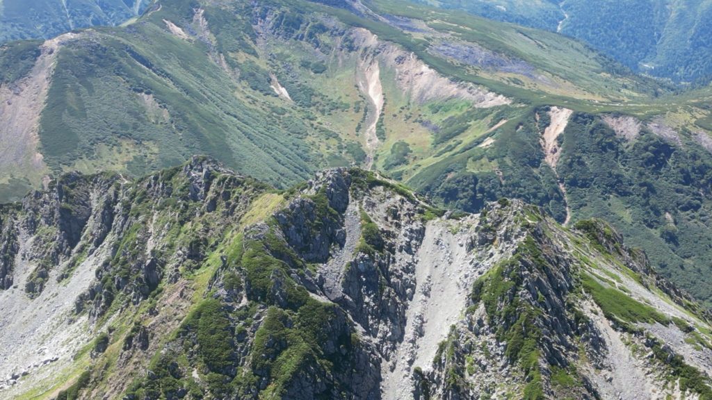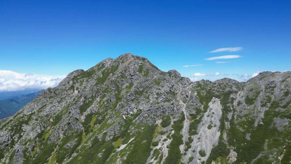 高瀬ダムの北アルプス裏銀座登山口から4日間かけて野口五郎岳、真砂岳、水晶岳、ワリモ岳、鷲羽岳を縦走してきました。笠ヶ岳も予定していましたが、台風の影響で急遽中止し、1日早めて新穂高温泉駅に下山しました。水晶岳は、富山市南東部に位置する標高2,986mの飛騨山脈の山です。山域は中部山岳国立公園に指定され、日本百名山に選定されています。 別名は、黒岳です。