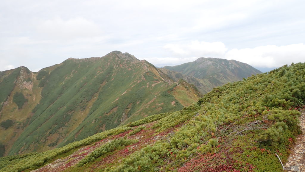 歩いてきた稜線に重なって石狩岳山頂、その右の音更山