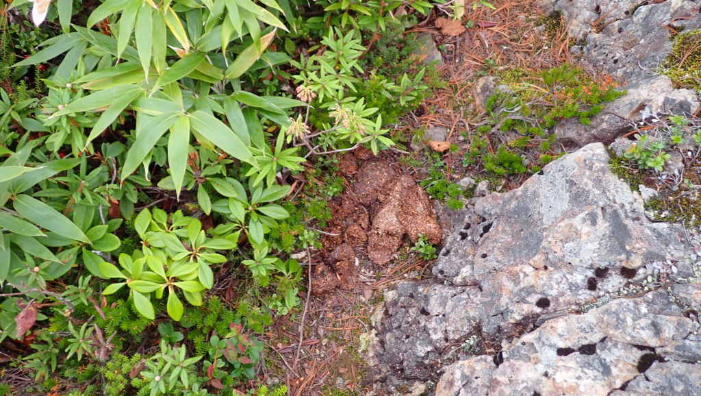稜線上にはハイマツを食べたヒグマの糞があちこちに