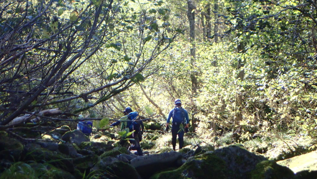 夏道から見える沢です。それ程濡れることが無いので秋の寒い時期に良いかも。
