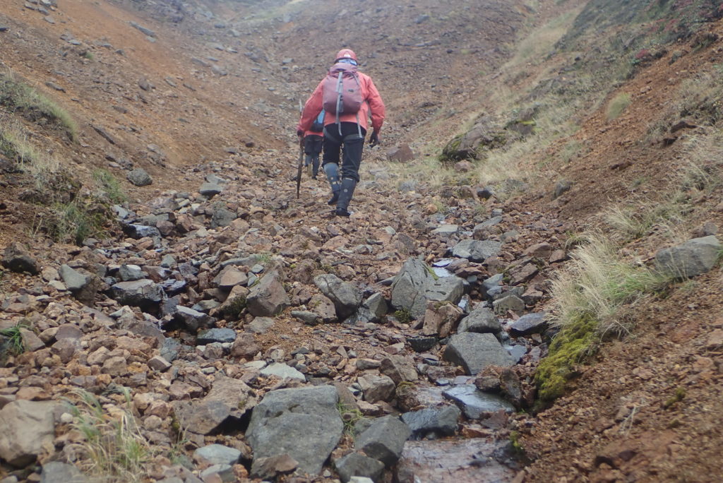 最後は雪渓が残る場所なのでしょう。植生が乏しい箇所を歩きます。