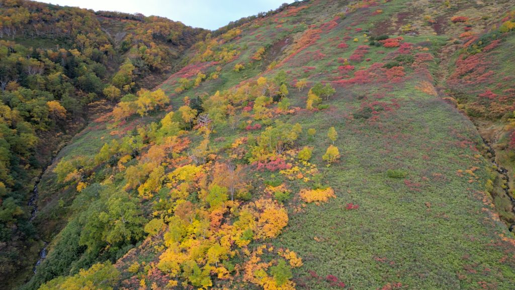 赤岳の紅葉狩りを目的に、赤岳、白雲岳をピストンしてきました。紅葉は第一花園以外はもう終わっていました。稜線では雪があるところもあり、季節の変わり目を感じました。日本で一番早いと言われる北海道大雪山の紅葉は9月中旬から9月下旬に見頃を迎え、針葉樹の緑とナナカマド、カエデなどの落葉、広葉樹の朱色や黄色の絶妙な色合いで山全体を彩ります。特に赤岳登山口の標高約1500メートルに位置する銀泉台は、赤岳の山麓から流れる滝(銀河の滝)の源流と考えられていることに名前が由来し、紅葉の名所として登山家たちによく知られています。