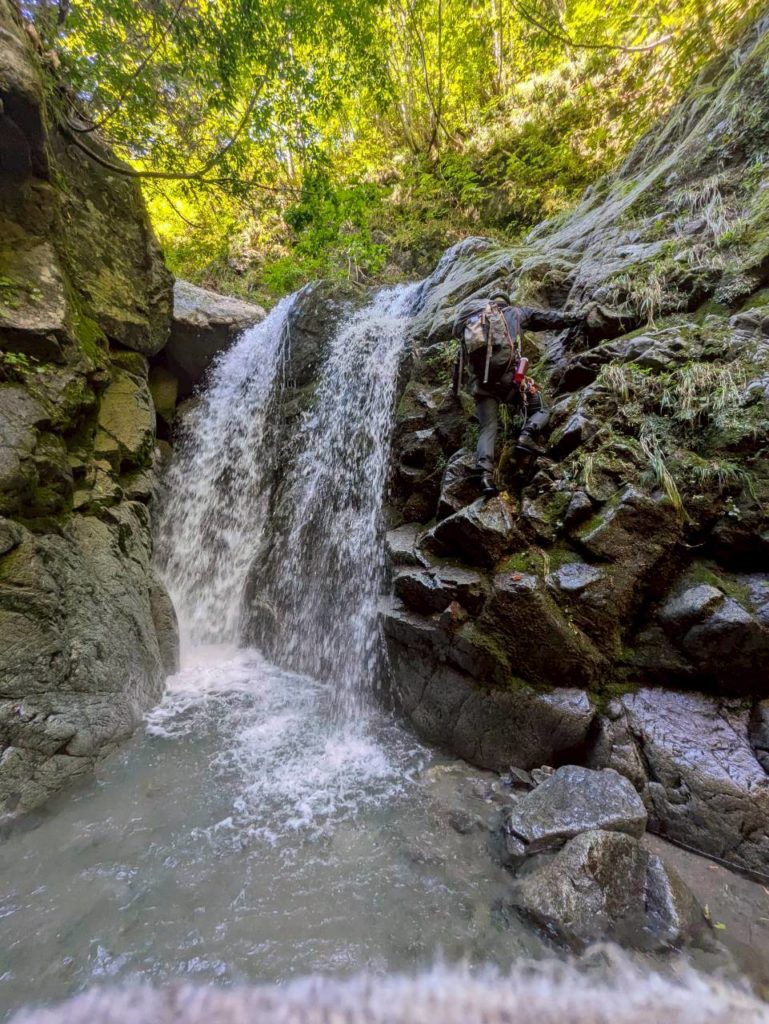 1か所緊張する滝登り。