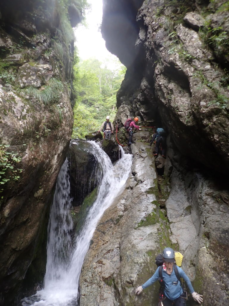 合流地点が見えずに1ピッチ懸垂したが、歩いて合流できた。