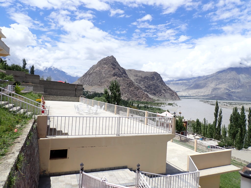 目前にインダス川が流れる景色良好なコンコルディアホテル。